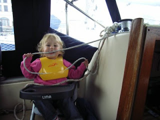 Der nächste Morgen bringt erstmal Regen. Auch der Wind legt zu. Eigentlich könnte man bei dem Sauwetter in der Koje bleiben. Leider hat Lilli dafür so gar kein Verständnis. Nach wenigen Minuten heißt es aufstehen und Frühstück machen. Ist auch gemütlich – draußen prasselt der Regen auf die Kuchenbude – wir sitzen drunter und frühstücken mit heißem Kaffee. Nach dem Frühstück wird der Regen vom Wind weggeblasen und wir starten zum Spaziergang. Lilli braucht Auslauf. Unterwegs treffen wir einen Spielkameraden für Lilli. Der kleine Maximilian scheint sogar noch frecher zu sein. Er ist mit einer Kinderbetreuerin vom Hotel unterwegs und schnappt sich gleich Lillis Puppenwagen. Wir kommen mit der Babysitterin ins Gespräch und erfahren von einem Spielzimmer im Hotel, dass man jederzeit nutzen kann. Das wollen wir uns ansehen. Tatsächlich – hinter der Käpt´n Blaubär Mauer eröffnet sich ein kleines Kinderparadies mit Bällebad und Chill-Ecke mit Kissen sowie zahlreichen Spielsachen. Im Hintergrund läuft Chillout-Musik. Wir lassen uns in die Kissen sinken und Lilli erkundet das Bällebad während sich draußen eine Gewitterzelle entlädt. So lassen wir es uns gut gehen – mitten in der all inclusive Gesellschaft. Bis zum Mittag kommen auch noch andere Eltern mit ihren Kleinen vorbei und es entsteht ein munteres Treiben. Dann treibt uns der Hunger zurück an Bord. Außerdem scheint schon wieder die Sonne. Lilli fällt nach einer Gläschenmahlzeit sogleich in einen tiefen Mittagsschlaf. So haben wir genug Zeit für unsere Butterbohnen mit Pellkartoffeln und Minutensteaks. Dazu eine Weinschorle. Lecker. Danach läuten wir die Siesta ein. Das Wetter hält sich aber der Wind frischt immer mehr auf. Nachmittags gehen wir nochmal spazieren und besuchen erneut das Spielzimmer. Im Hafen merkt man wirklich, das Ferienzeit ist. Viele Familiencrews sind unterwegs – meist ist sogar noch ein Hund mit dabei. Das hört sich dann manchmal an wie auf dem Dorf, wenn alle Vierbeiner zum Bellduell anstimmen. Abends macht Lilli noch eine Weile Terror, bevor die Müdigkeit siegt. Anschließend genießen wir ein Weinchen während draußen der Wind im Rigg heult. Bei solchen Windgeräuschen können wir besonders gut schlafen.