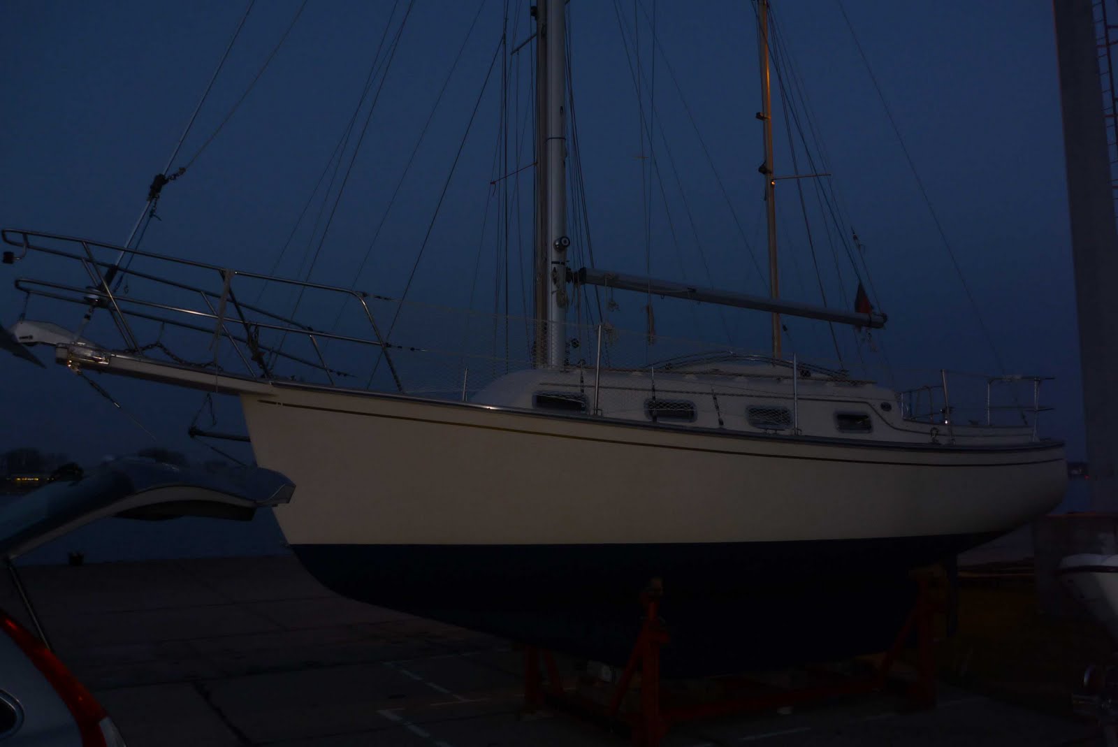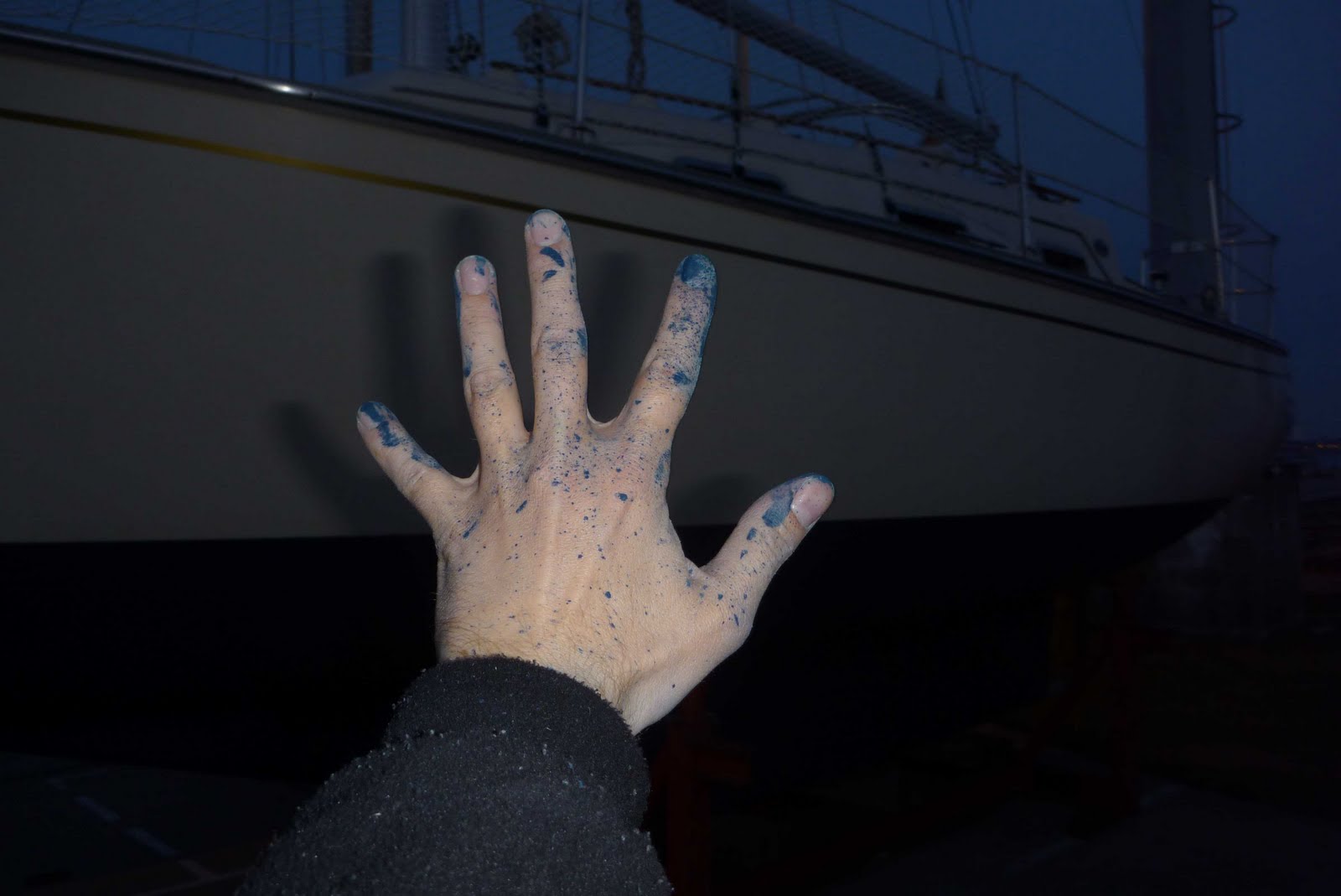 Die Sonne lachte vom Himmel und der Wetterbericht hatte durchaus bis zu 18 Grad an gesagt. Leider wehte über die Warnow ein mehr als steifer, eiskalter Südostwind. Nicht gerade angenehm aber es könnte schlimmer kommen. Bis zur kurzen Mittagspause rückte ich dem Unterwasserschiff mit Schleifpapier zu Leibe und bereitete alles für einen neuen Anstrich mit Antifouling vor. Der frische Wind sorgte dann zumindest dafür, dass die Farbe sehr schnell antrocknete. So konnte ich an einigen Stellen direkt nachstreichen und unseren baldigen Start in die Saison absichern. Gegen Abend nahm sogar der Wind ab und die Sonne wärmte die geschundenen Glieder. Um kurz nach Acht war es dann soweit…Feierabend. Fix und fertig sackte ich in den Autositz, nachdem ich vergeblich versucht hatte, die Farbreste von meinen Händen zu waschen. Da muss wohl Verdünner her. Man sollte halt nicht an den Schutzhandschuhen sparen. Zuhause fiel ich dann nach Feierabendbierchen und Abendbrot ins Bett. Zufrieden, dass es nun recht bald wieder los gehen kann mit der Bootssaison.