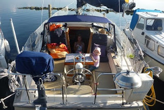 Die Rückreise zum Guldborgsund ging besonders flott. Sieben Windstärken wehten uns unter Genua mit über 6 Knoten und kräftigen Drückern Richtung Heimat. Zurück in Nykobing lernten wir noch eine deutschen Pärchen vom Nachbarschiff kennen, das sogar mit zwei kleinen Mädchen unterwegs war. Wir tauschten uns aus und gaben den drei Prinzessinnen Gelegenheit zum gemeinsamen Toben. Dabei klemmte sich leider die kleine Johanna den Daumen in der Tür zum Vorschiff ihres Bootes, woran Lilli nicht ganz unschuldig war. Somit war der Abend vorschnell beendet und das Geschrei war groß.
