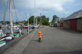 Ich beiße die Zähne zusammen und weiter geht unsere Tour den Guldborgsund hinauf. Dann können endlich mal die Segel gesetzt und der Motor ausgemacht werden. Mit Halbwind rauschen wir die Südküste von Femo entlang. Meine Mädels schlafen unten, nachdem Lilli uns lange mit Übermüdungsgequengel genervt hatte. Von der sengenden Sonne erschöpft, machen wir im überfüllten Hafen von Femo fest. Das weltberühmte Jazz-Festival nahte und so blieb uns zunächt nur ein Liegeplatz im 3er Päckchen. Da mich die Sinusitis ziemlich niedergestreckt hatte, blieben wir zum auskurieren und entspannen ein paar Tage auf der Insel. Der Wind hat sowieso auf West (also entgegen unserer geplanten Route) gedreht und kräftig aufgedreht. Wir nutzen den Strand direkt am Hafen und spazierten mit Lilli in die Inselörtchen, um unsere Vorräte mit den frischen Köstlichkeiten der Hofläden anzureichern.
