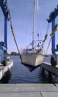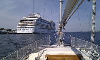 Man bin ich durch. Wie ein aufgeschlagenes Ei, das den ganzen Tag in der Pfanne geschmort hat. Extra Fleecepulli und Windjacke mitgehabt und dann den ganzen Tag in T-Shirt und Shorts verbracht. So kann das Wetter die nächsten Monate bleiben. Jedenfalls schwimmt die Carpe Diem jetzt wieder in ihrem Element. Hat alles gut geklappt. Motor gleich angesprungen, Ablegen bei Seitenwind allein gemeistert. Eine Stunde die Warnowmündung runtermotort, vorbei an der Aida Sol kurz die Nase auf die offene Ostsee gesteckt, nach Hohe Düne eingebogen und sicher am Liegeplatz festgemacht. Dann neue Wasserpumpe eingebaut, aufgeräumt, alle Segel und Leinen wieder angeschlagen…und schon war es nach 19 Uhr. Der Putzmarathon muss vertagt werden. Mann ist dass Deck dreckig…ein Winter im Freilager + reichlich Pollenflug ohne Regen = ein Haufen Arbeit. Dazu dann am Wochenende. Jetzt erstmal ein Gläschen Belohnungsrosé und dann ab in die Koje.