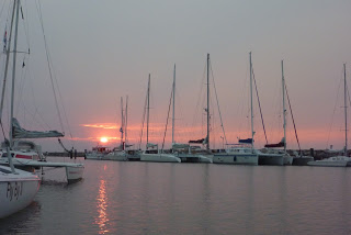 Vom 26.-28.07. fanden sich in Hohe Düne rund 100 Katamarane und Trimarane aller Größenklassen zu einem Treffen ein. Bei bestem Sommerwetter ließen wir uns das Spektakel nicht entgehen. Mit unserem Schlauchboot paddelten wir an unzähligen Rümpfen entlang und ließen die Eindrücke wirken. Zwischendurch gings auch mal für Badepausen zum Strand. Da auf einigen Katamaranen auch \“open ship\“ war, gingen wir auf Tuchfühlung mit den Zweibeinern. Einen kleinen 26 Fußer und zum Vergleich einen 37 Fuß Prout schauten wir an, wobei uns der Größere natürlich mehr zusagte. Hier noch ein paar Fotoeindrücke: