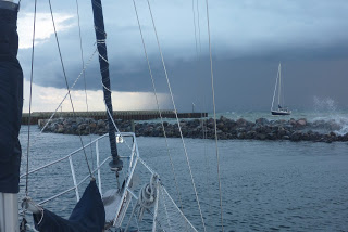 Mit ordentlich Wind und unseren Freunden von der Yuendumu auf Verfolgerkurs mussten wir uns Gedser zunächst hart am Wind mit reichlich Welle erkämpfen. Die Seekrankheit forderte trotz Superpep-Kaugummis ihre Opfer bei unseren Leichmatrosinnen. Dafür entschädigte uns tolles Grillwetter. Die Wetterprognose sollte leider so nicht bleiben. Die Zeichen standen auf Tiefdruck und Sturm aus Südwest. Vorher verlegten wir bei Ruhe vor dem Sturm unter Motor nach Klintholm.