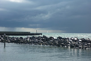 Unterwegs wurden wir von drei Schweinswalen besucht, die uns sehr interessiert umkreisten. Sehr intensiv. In Klintholm schlug das Wetter dann richtig zu und es gab nicht nur einen Nachschlag. Wind und Welle satt aus Südwest führten dazu, dass wir 7 Nächte blieben und selbst am Liegeplatz durchgeschaukelt wurden, wie unterwegs. Zeit für Strandspaziergänge, faulenzen, Kreidefelsen, Hafenkino.