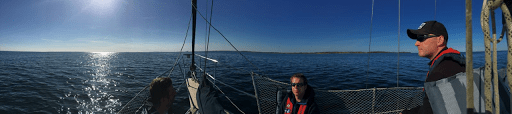 Den Samstag Vormittag nutzten wir bei weniger Wind, um mal das aufblasbare SUP-Board auszutesten. Gar nicht so leicht bei den Wellen die Balance zu halten. Da spürt man schnell völlig untrainierte Muskeln. Nachmittags legte der Wind wieder langsam zu und ich konnte mit meinem 16er Kite auf´s Wasser gehen. Nach zwei ausgedehnten Sessions war dann die Luft raus aus den Muskeln. Der Wind legte weiter zu und so kamen auch die Windsurfer auf ihre Kosten. Am nächsten Tag mussten wir ja zurück nach Warnemünde und früh aufstehen, denn der Ostwind war ja gegen uns und sollte über den Tag zunehmen. Das bedeutet auch Seegang von vorn. Als wir morgens um 7 Uhr ablegten, war es mit 4 Beaufort noch moderat und wir konnten unter Maschine viel Strecke gut machen. Letztlich brauchten wir aber doch 9 Stunden und das ohne Segeln. Auf Kreuzkurs hätten wir etwa doppelt so lange gebraucht und aus der Ferne hörten wir schon Familie und Job rufen. Abgekämpft aber zufrieden zogen wir dann Sonntagabend Richtung Heimat. Bis zum nächsten Jahr.