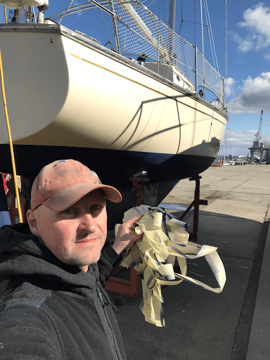 Da habe ich gestern morgen nicht schlecht gestaunt. Dicke weiße Flocken werden aus grauen, zerfetzten Wolken gespuckt. Es schneit am 19. April. Passt zum April aber nicht zu meinem Plan, dass Unterwasserschiff zu streichen. Sonne war angesagt und bis 6 Grad immerhin. Zum Glück bessert sich das Wetter gegen Mittag als ich am Schiff mit der Arbeit beginne. Und Bewegung hält warm und hilft vielleicht gegen die Rückenschmerzen aus dem Büro. Nun sitze ich mit Muskelkater auf der Couch und hoffe auf einigermaßen ordentliches Wetter am Montag, wenn es am Kran zurück in die Ostsee geht.