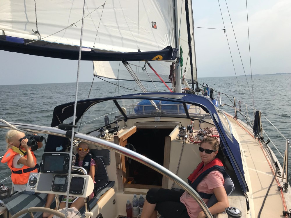 Heute haben wir rüber gemacht bei totaler Flaute. Nur am Anfang konnten wir wenige Meilen den Motor ausmachen. Auch mit dem Parasailor konnten wir nichts reißen. Also musste uns doch der Motor nach Burgtiefe schieben. Die Sonne brennt und der Grill geht heute noch an. Urlaub!