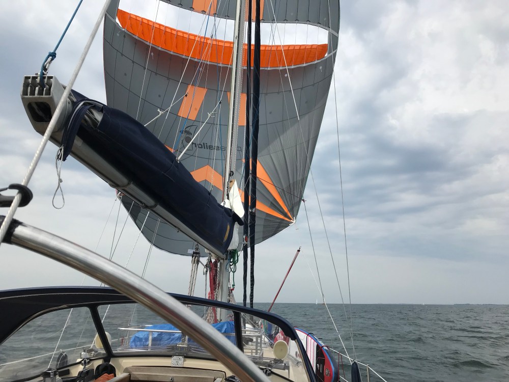 Gestern nutzten wir den Südostwind und machten uns auf den Weg durch die dänische Inselwelt nach Faaborg. Die Yuendumu verließ schon etwa 20 Minuten früher den Hafen und wir nahmen die Verfolgung auf. Ausgangs des Fahrwassers setzten wir unseren Joker, den Parasailor. Nun ging es vor den 4 Windstärken mit 6 statt 4 Knoten voran. Schnell hatten wir die Yuendumu eingeholt. Das letzte Stück segelten wir dann eng zusammen unter Genua. Rein nach Faaborg dann auf Halbwindkurs mit mehr als 7 Knoten Fahrt.