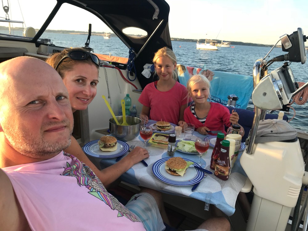 Da das Wetter so gut mitspielt, haben wir zur kleinen Insel Lyø in die Ankerbucht verlegt. Auf dem Weg die Steilküste entlang versuchte ich noch mit meiner Angel einen Dorsch zu überlisten. Leider ohne Erfolg. In der Nähe der Yuendumu fällt der Anker in die Seegraswiese. Über 40 Boote liegen schon vor Anker. Nach einer Stärkung paddelten wir zu einem kleinen Strand rüber und schnorchelten zwischen tausenden Muscheln. Wanderten auch zum Hafen. Später an Bord ging zum Sonnenuntergang der Grill an und es gab Burger.