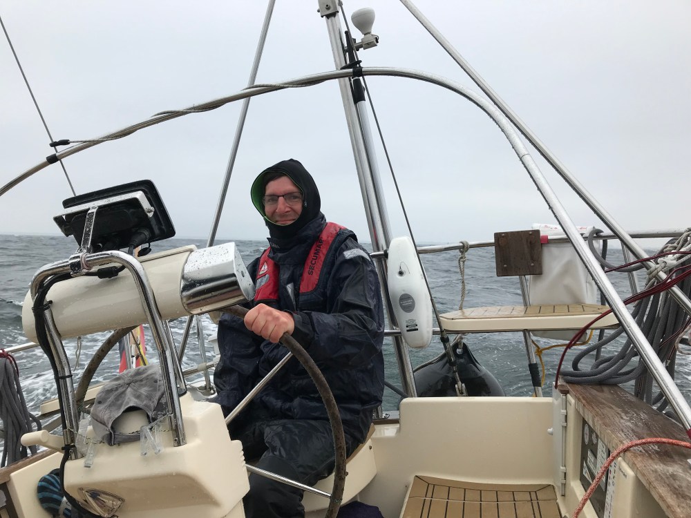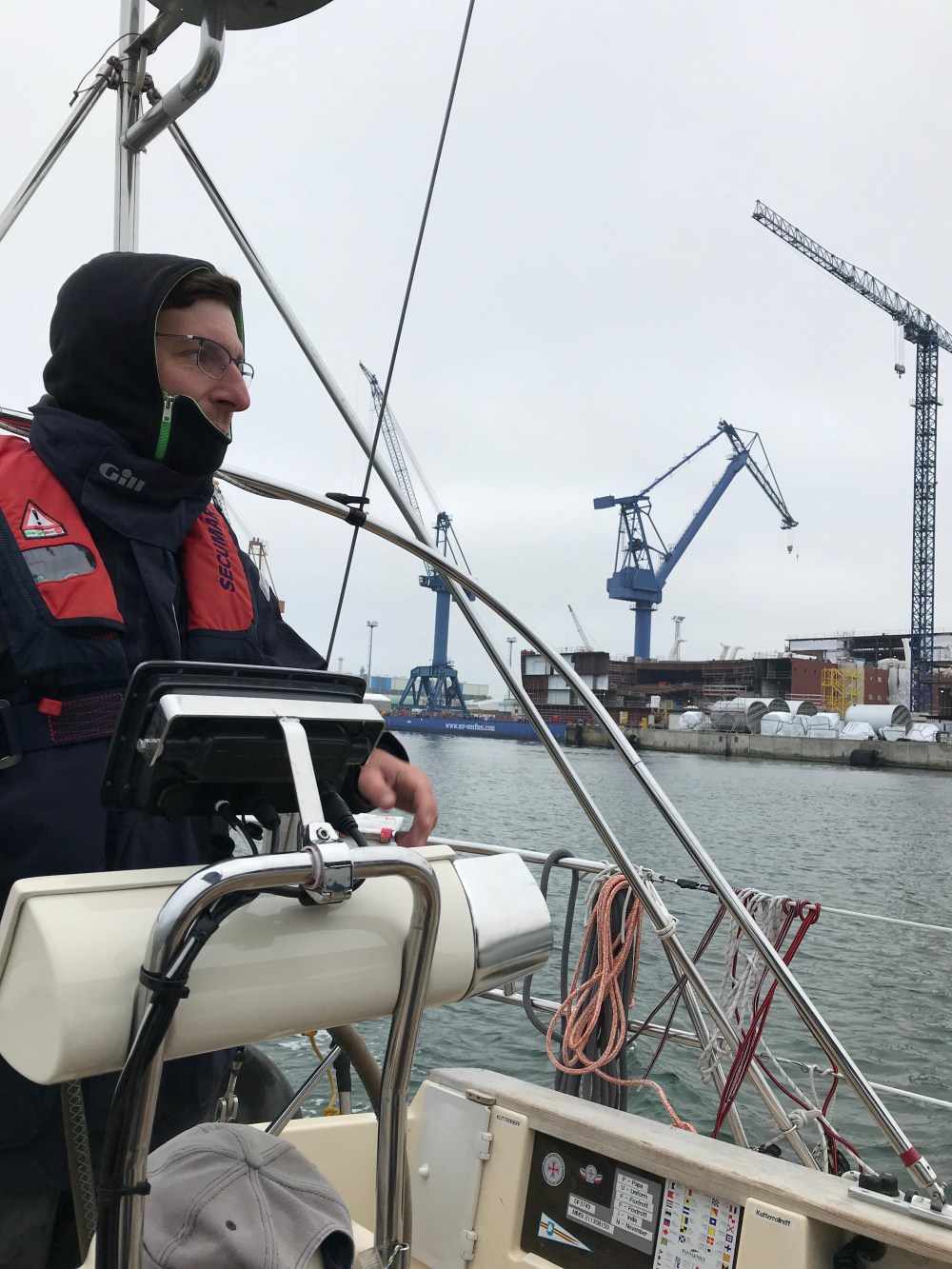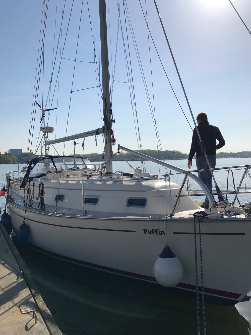 Zur Unterstützung kam gestern mein Freund Christoph an Bord, mit dem ich die Puffin im Oktober schon bei besten Halbwind-Bedingungen zum Winterlager verholt hatte.