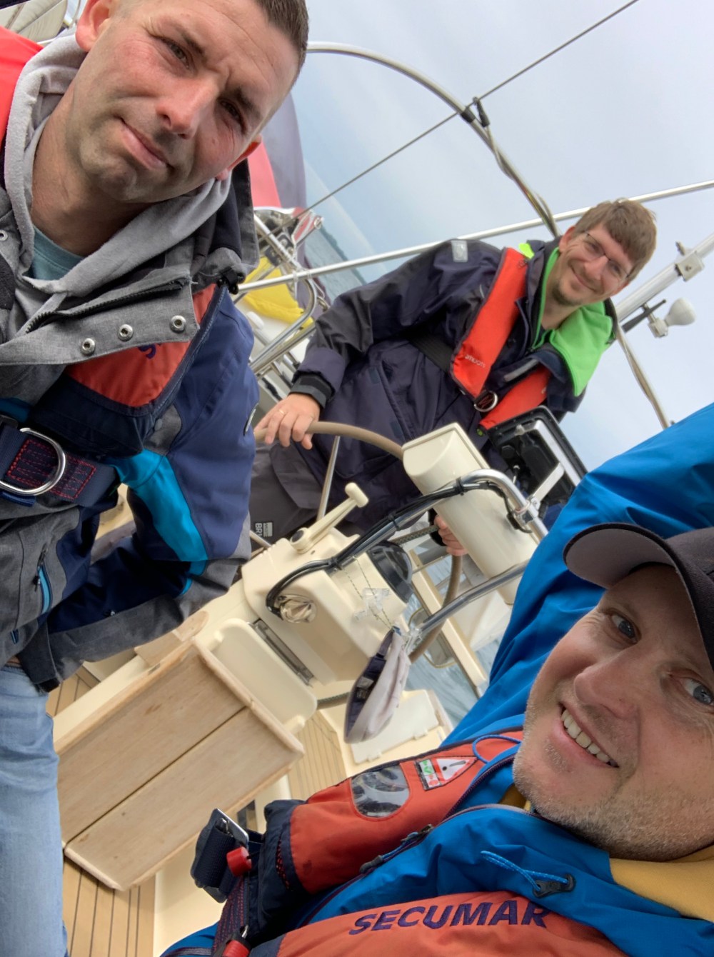 Nach einigen Willkommenspizzen und Dosenbier sind Mittwoch Abend schnell die aktuellen Lebensstati abgeglichen und der Wettergott scheint auch dieses Jahr in unsere Karten zu spielen. Am Herrentag legen wir zu dritt um kurz nach elf ab mit Kurs Fehmarn. Der Südostwind pfeift mit 25 bis 30 Knoten recht ordentlich. Mit gerefften Segeln fliegen wir bei fast Halbwindkurs mit 6 bis 8 Knoten unserem Ziel Burgtiefe entgegen. In weniger als 5 Stunden sind die 31 Meilen im Sack.
