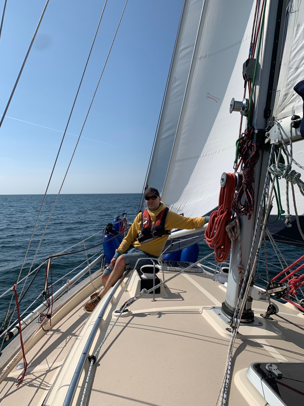 Ansonsten hat aber alles reibungslos geklappt. Wir haben jeden Tag gegrillt und das Windsurf-Festival unsicher gemacht. Party, Livebands und jede Menge Trubel. Mit unseren SUPs paddelten und surften wir uns den Bewegungsmangel weg. Heute traten wir bei Sonnenschein und leichten 3 Windstärken den Rückweg an. Kaum Welle, Anliegerkurs, Autopilot und Reggaemusik machten die Fahrt echt entspannt. War draußen auf See noch ein Pullover nötig, erwarteten uns in Boltenhagen 30 Grad. So kann es nun gern weiter gehen, denn es stehen weitere Törns an. Pfingsten schon nächstes Wochenende und auch der Sommertörn ist am Horizont schon auszumachen.