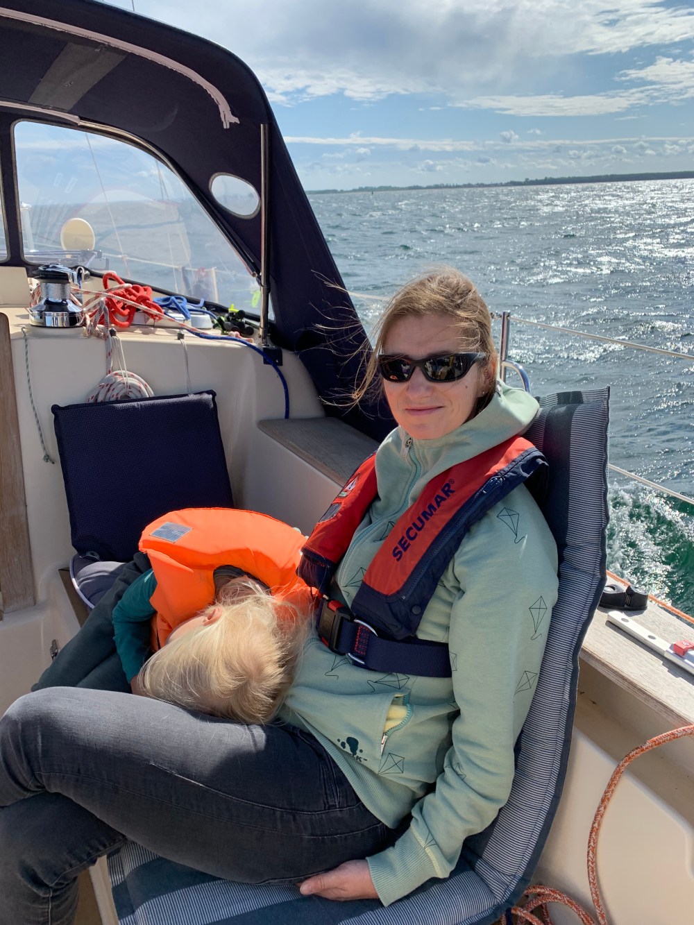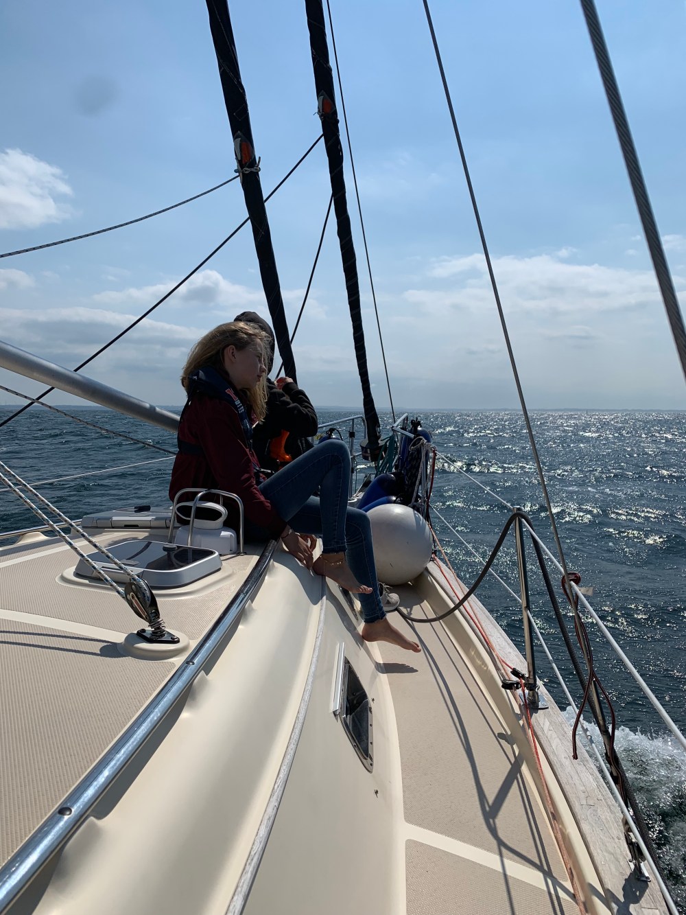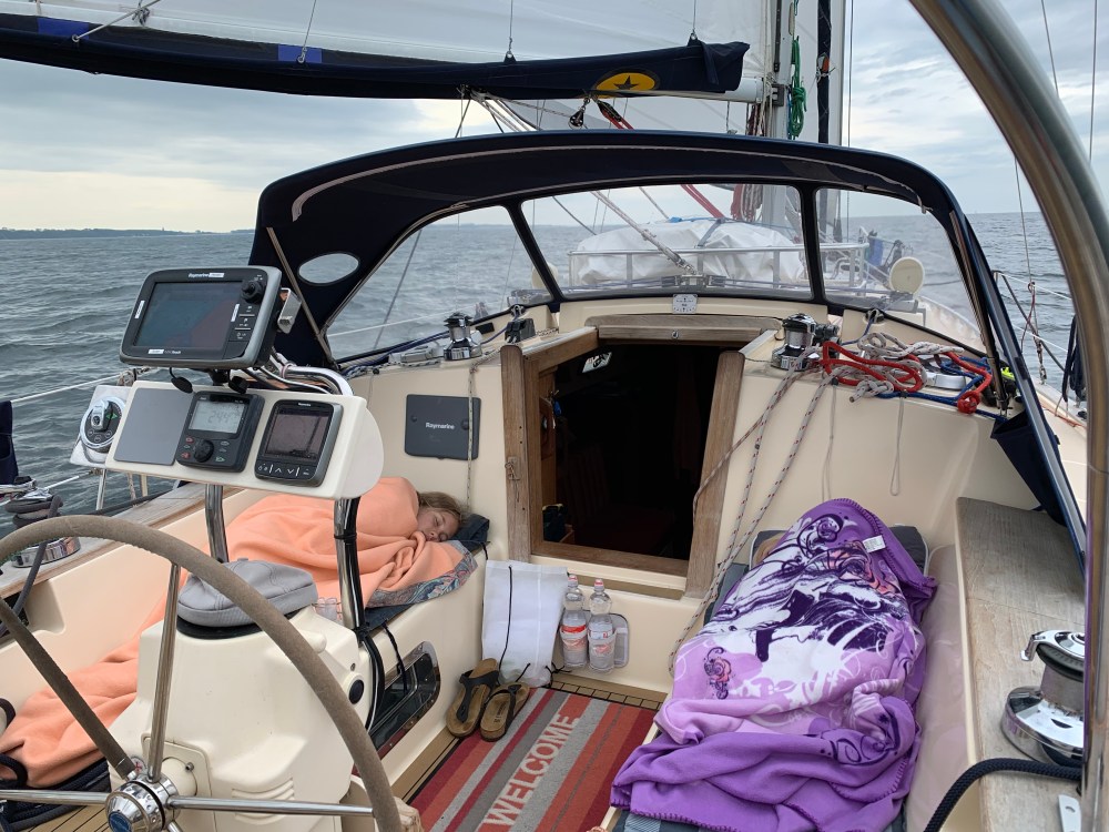Heute trennten sich unsere Wege bis zum Sommertörn erstmal wieder. Für die Yuendumu hieß es erneut, gegenan zu motoren. Der Wind hat auf Ost gedreht. Für uns ein Segen. Wieder rauschen wir bei weiter auffrischendem Wind von hinten dahin. Bald sind es wieder 6 Windstärken. Die letzten 10 Meilen reicht nur das Großsegel, um mit direktem Kurs mit 5-6 Knoten bis vor den Hafen von Boltenhagen zu segeln.