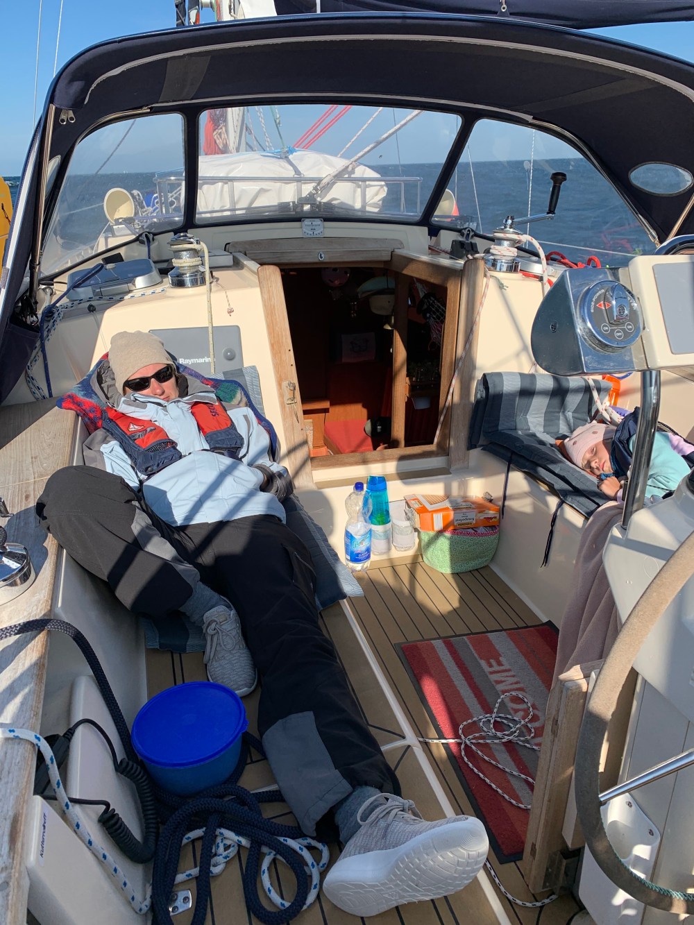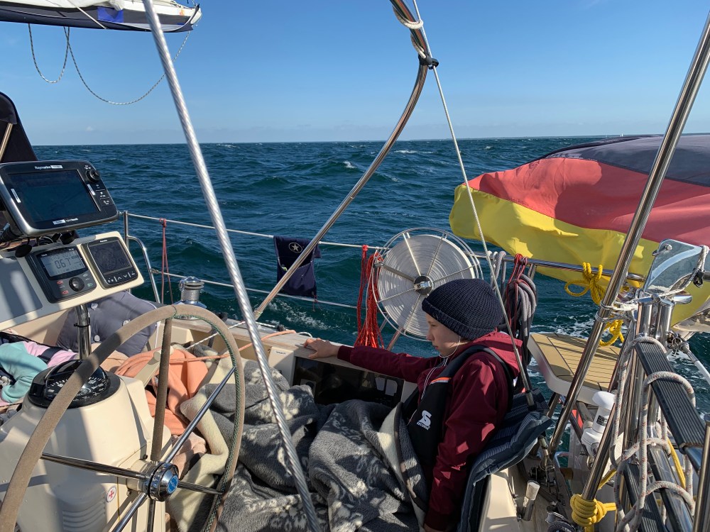 Seit wir Freitag an Bord kamen, saßen wir auf Kohlen. Sowas hatten wir bisher nicht gemacht. Ein Husarenstück speziell mit Kindern an Bord. Und es blies schon seit Tagen mit 6 bis 7 Windstärken aus West. Das sorgt auf der Ostsee für hübsch hässlichen Seegang, der noch lange nachläuft.