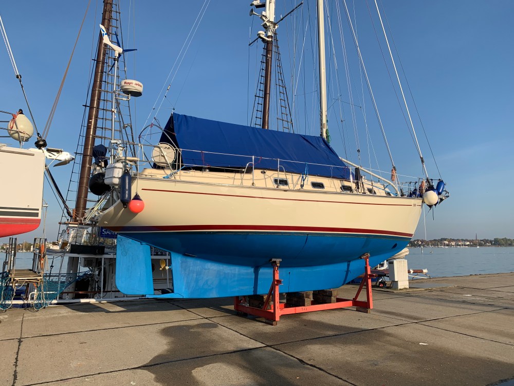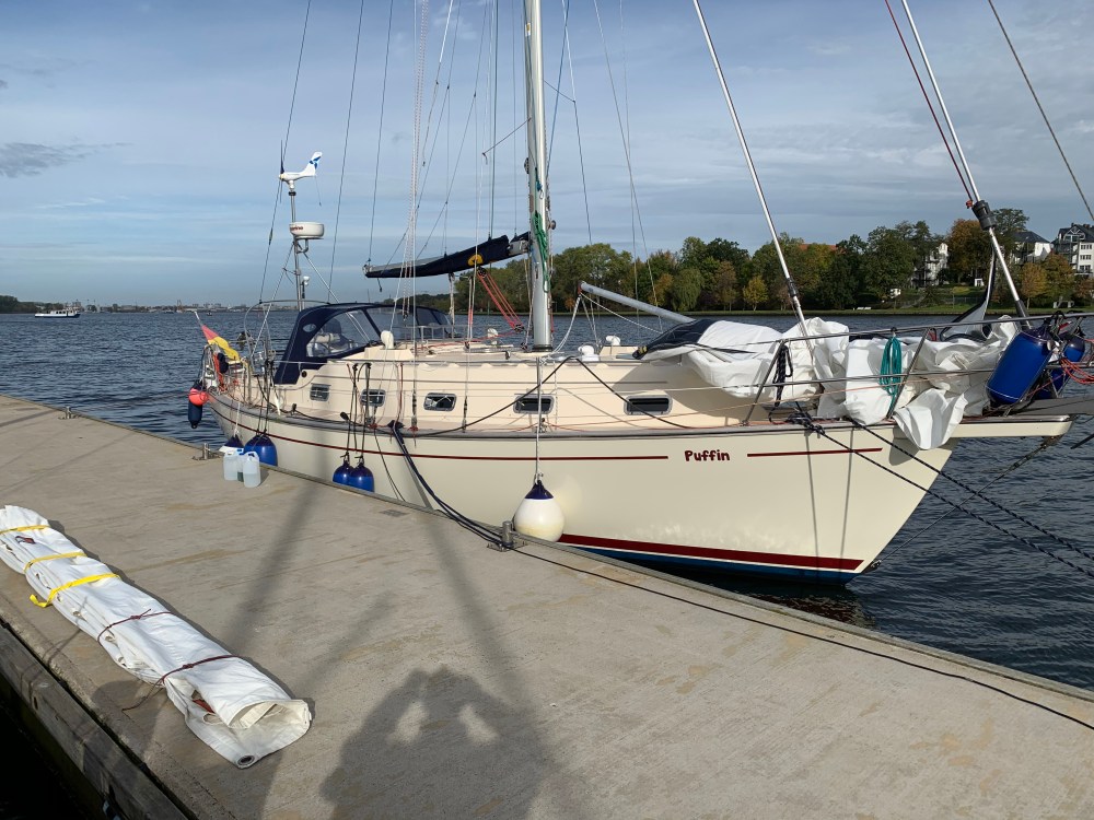 So geschafft. Unsere Puffin steht hoch und trocken. Winterplane ist angebracht und fast alle Handgriffe sind erledigt. Dazu lacht die Sonne und ich bin im T-shirt unterwegs. Aber der Reihe nach.