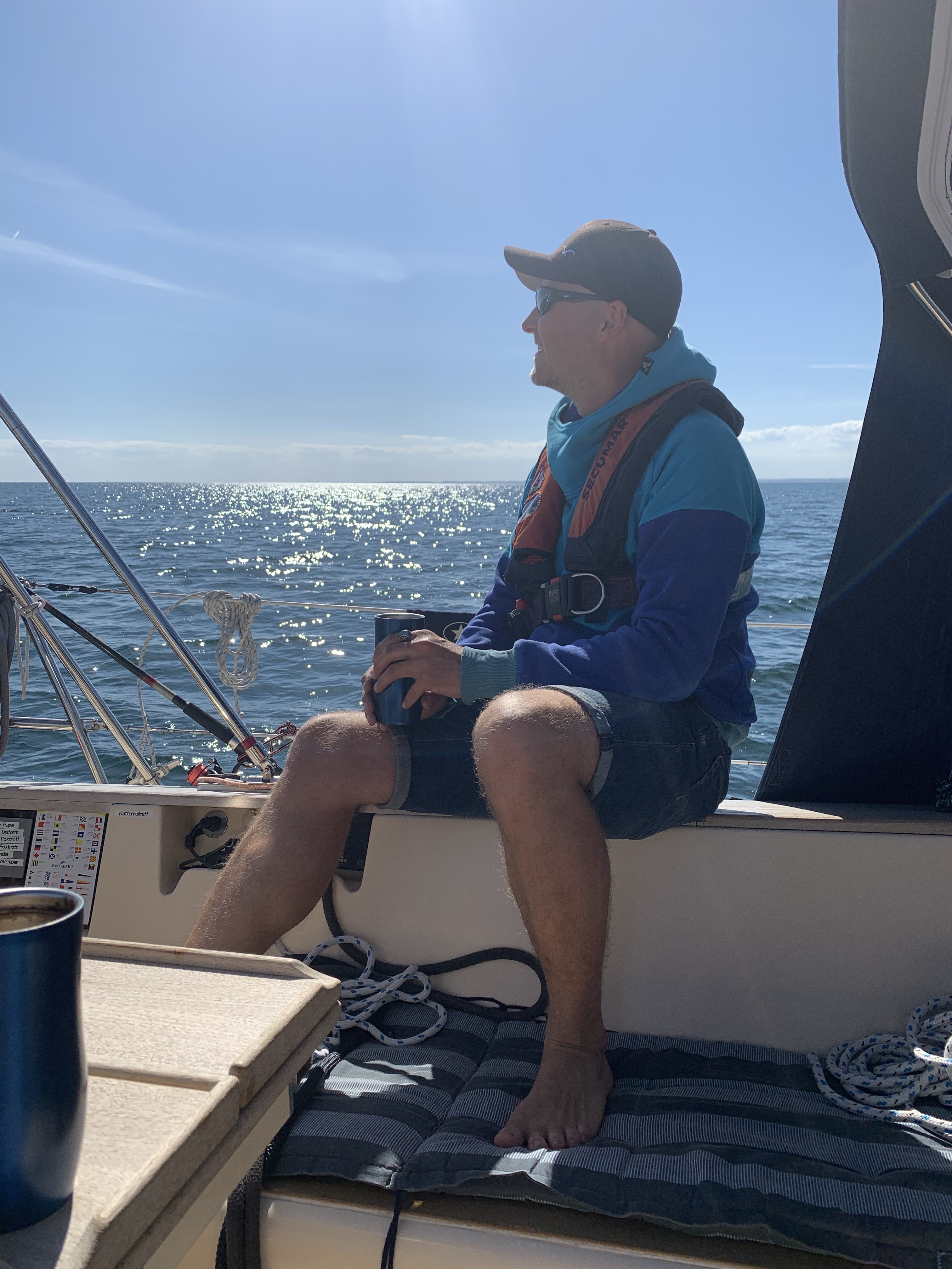 Am Herrentag verwöhnte uns Sonnenschein. Da vormittags noch Flaute herrschte, machten wir uns erst mittags auf den Weg. Bei leichtem Wind setzten wir alle Segel. Hoch am Wind kamen wir unter Autopilot nur langsam unserem Ziel näher. War nicht schlimm, denn wir hatten ja Zeit und gute Musik an Bord.