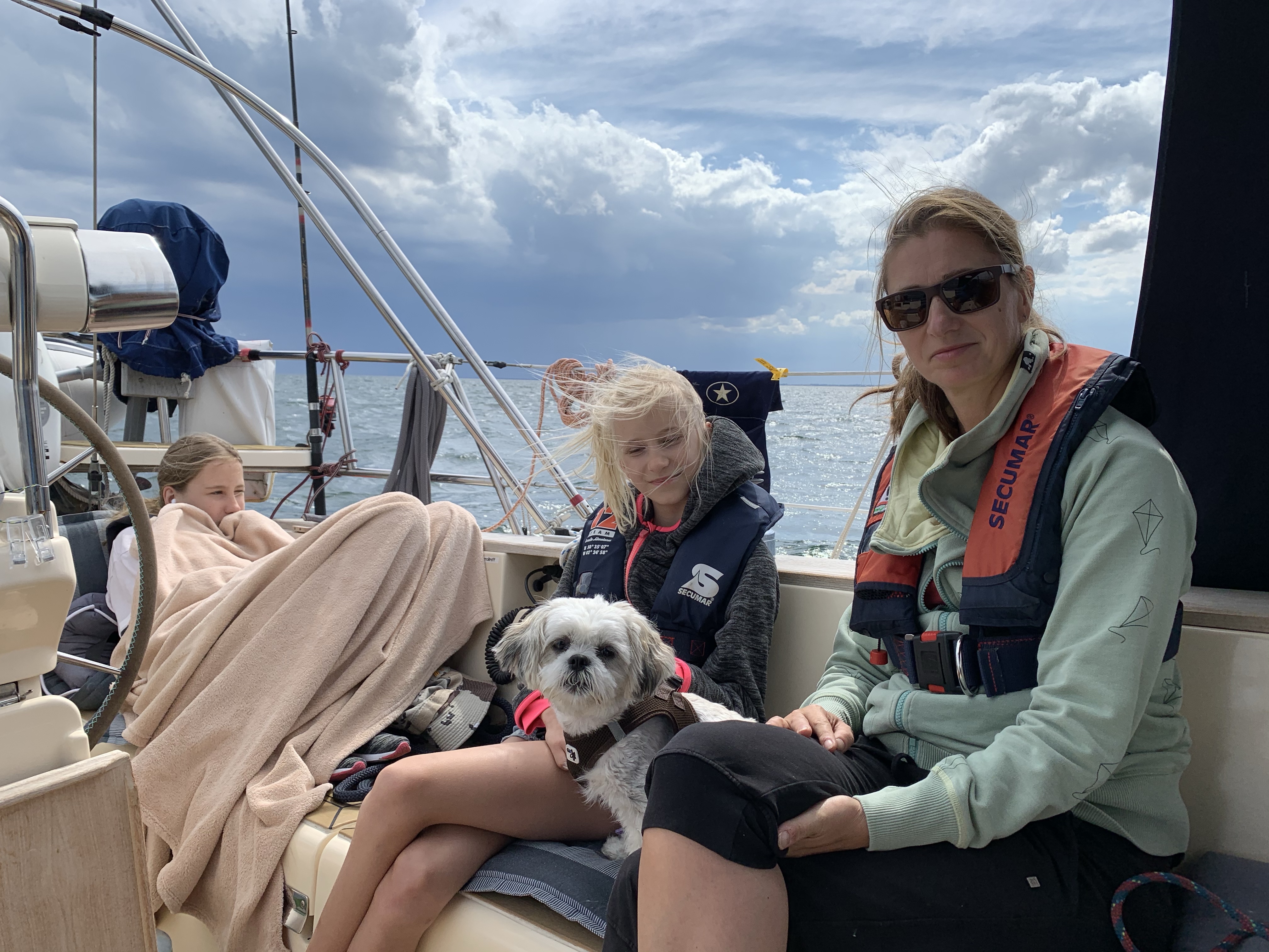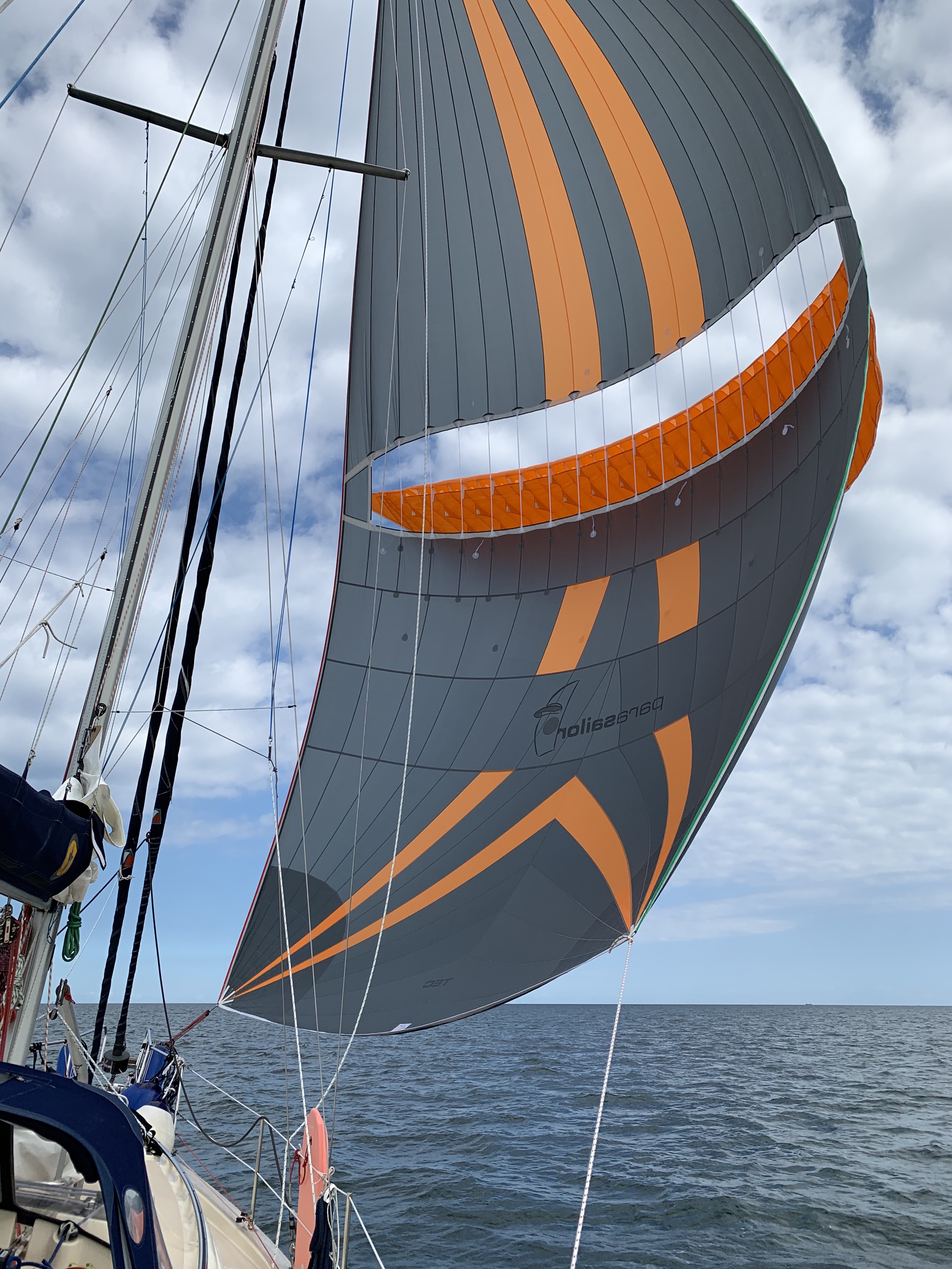 Uns hat es zumindest schon mal nach Fehmarn rüber geweht. Am Montag nutzten wir die Ruhe vor dem nächsten Tief und der Rückenwind aus Süd füllte mehr schlecht als recht unseren Parasailor. Am Ende brauchten wir sechseinhalb Stunden für die 30 Seemeilen. Gar nicht so schlecht. Zum Anlegen erwischte uns ein Schauer. Da waren die Segel aber schon wieder eingepackt.