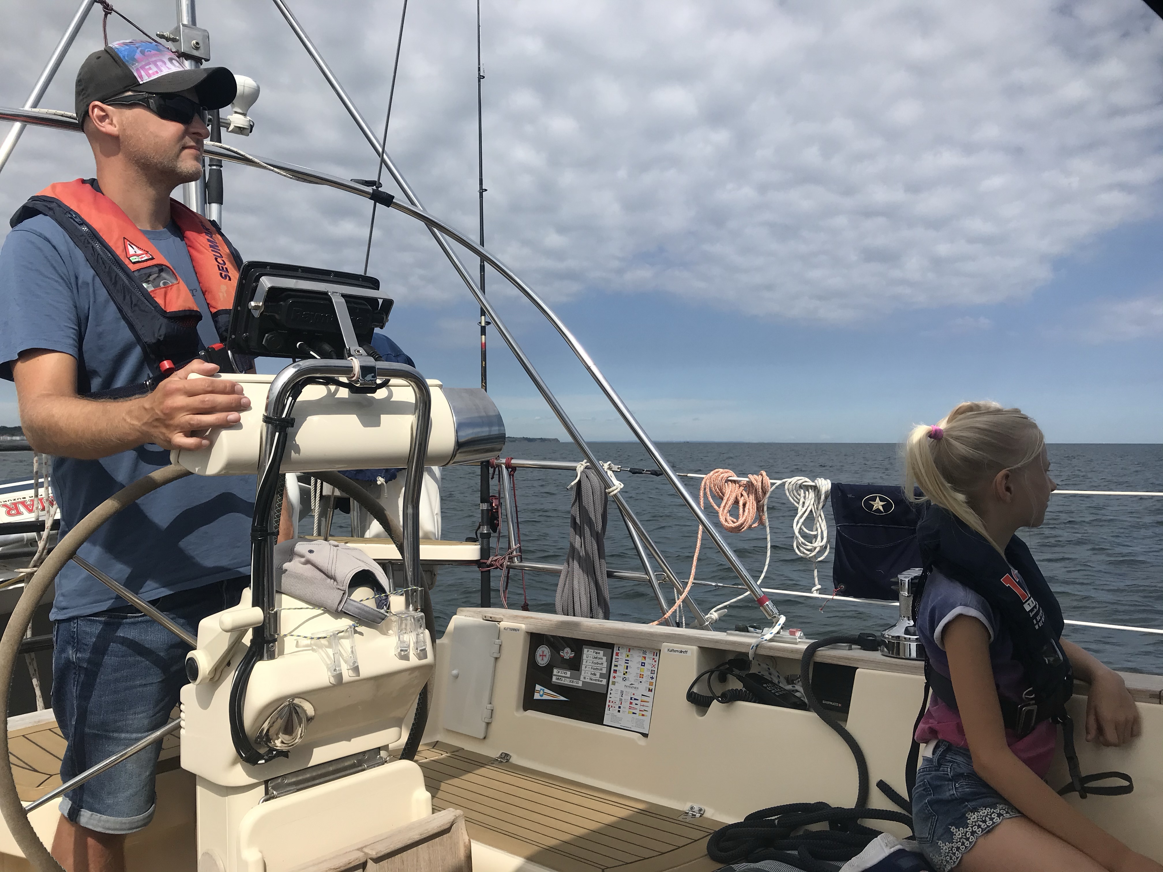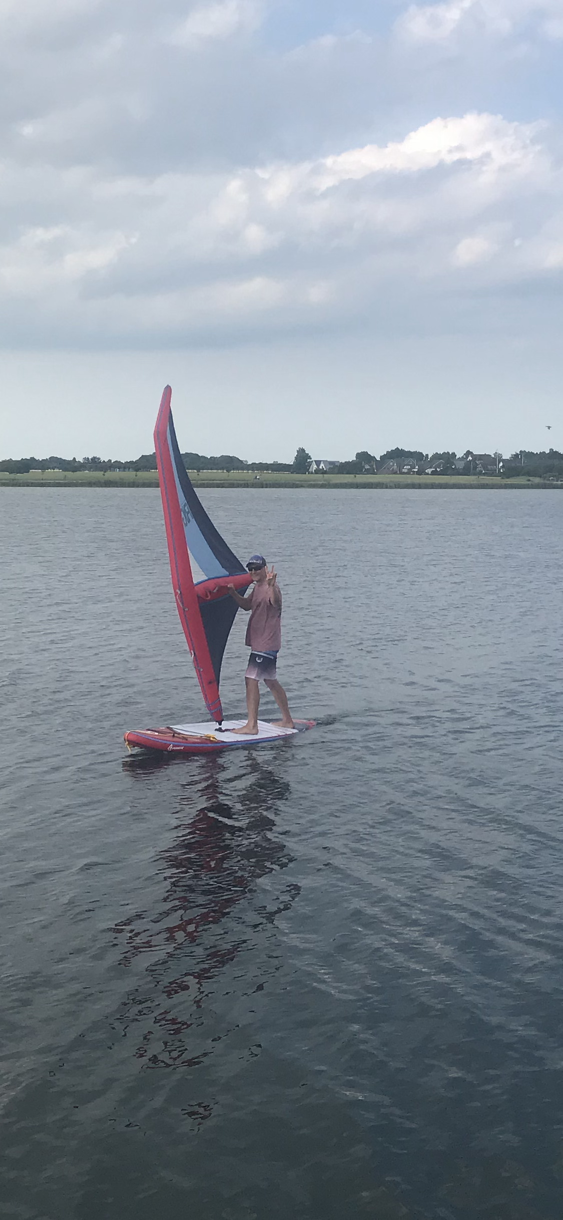 In Burgtiefe haben wir einen schönen Liegeplatz am Kopfsteg bekommen mit Blick über den Binnensee. Direkt vom Boot aus kann ich hier mit dem SUP paddeln oder surfen. Einen Kiteschirm habe ich auch dabei. Das nächste, windige Tief ist ja nicht weit. Wir lassen es uns gut gehen und nehmen das Wetter wie es kommt. Waren schon in Burg in der Stadt zum Shoppen, haben gegrillt und sogar am Südstrand gebadet. Naja… war schon recht frisch. Ich gehe trotzdem jeden Morgen vom Boot aus schwimmen. So ist das an der Ostsee. Abhärten und durch.