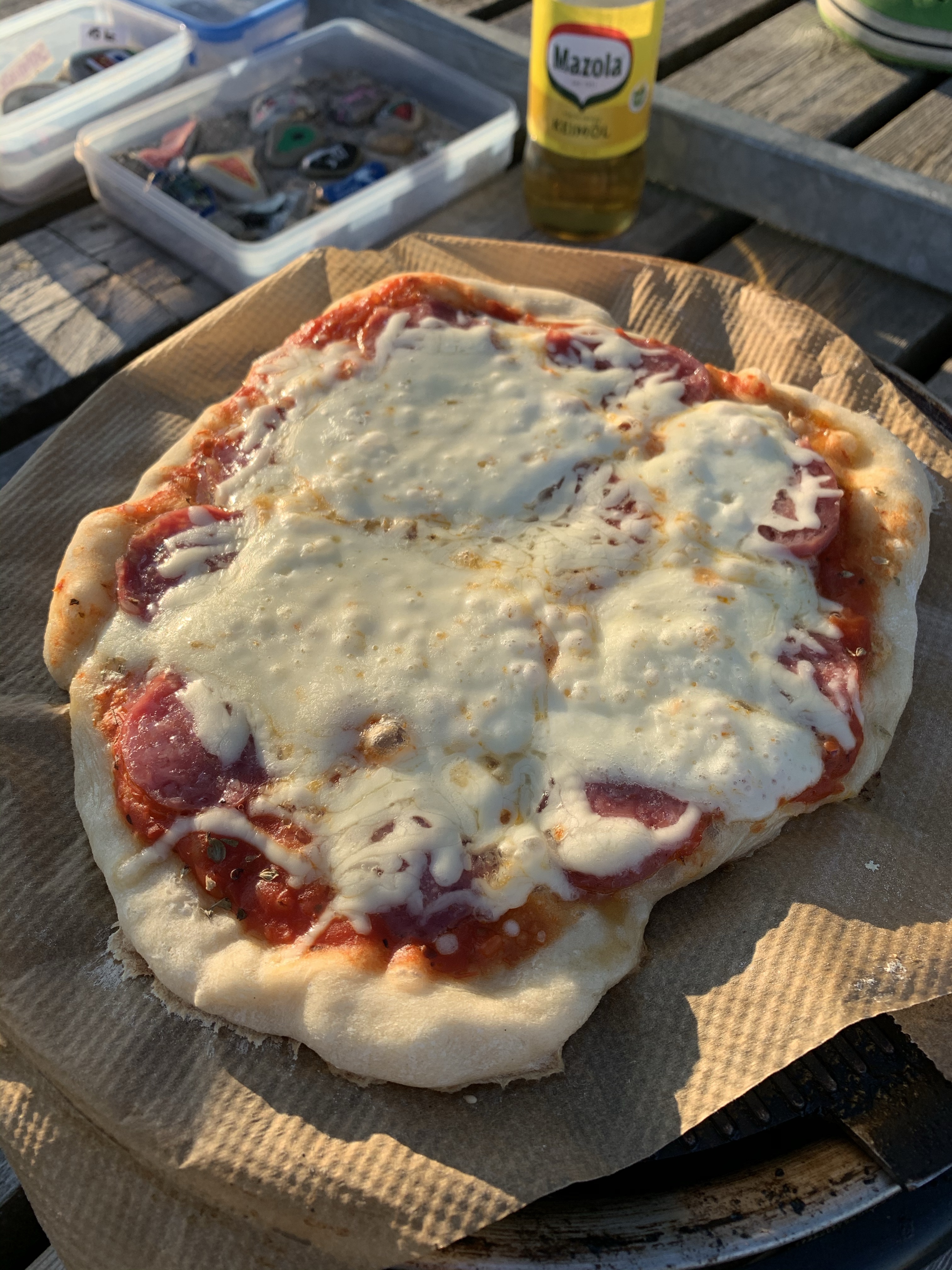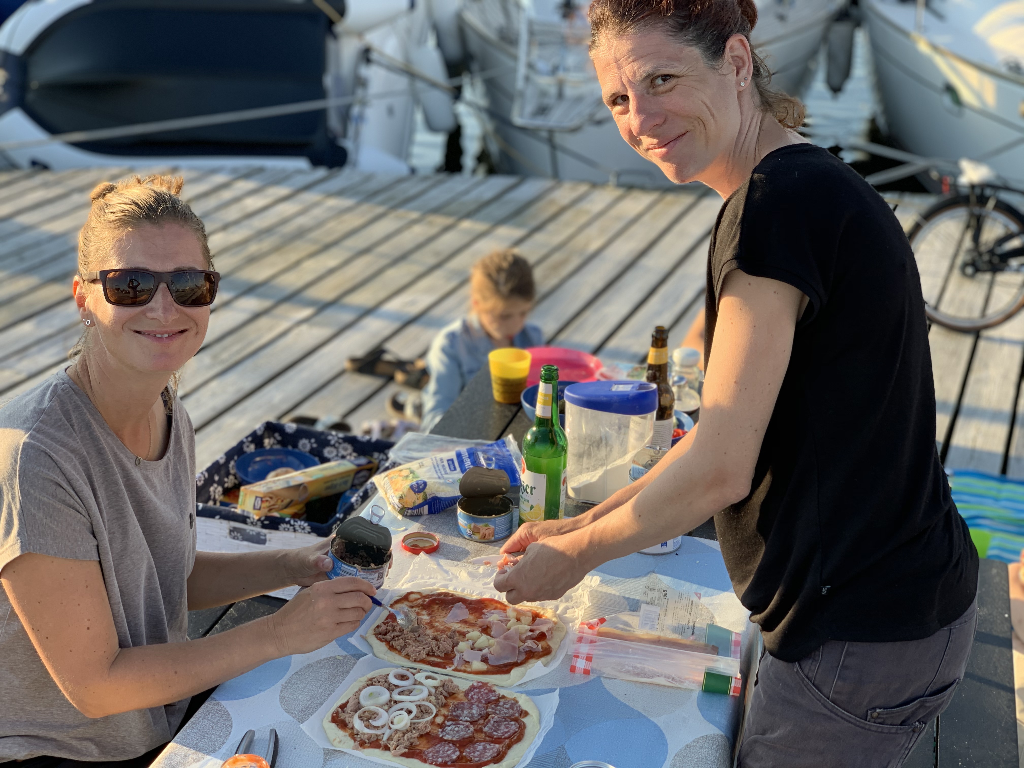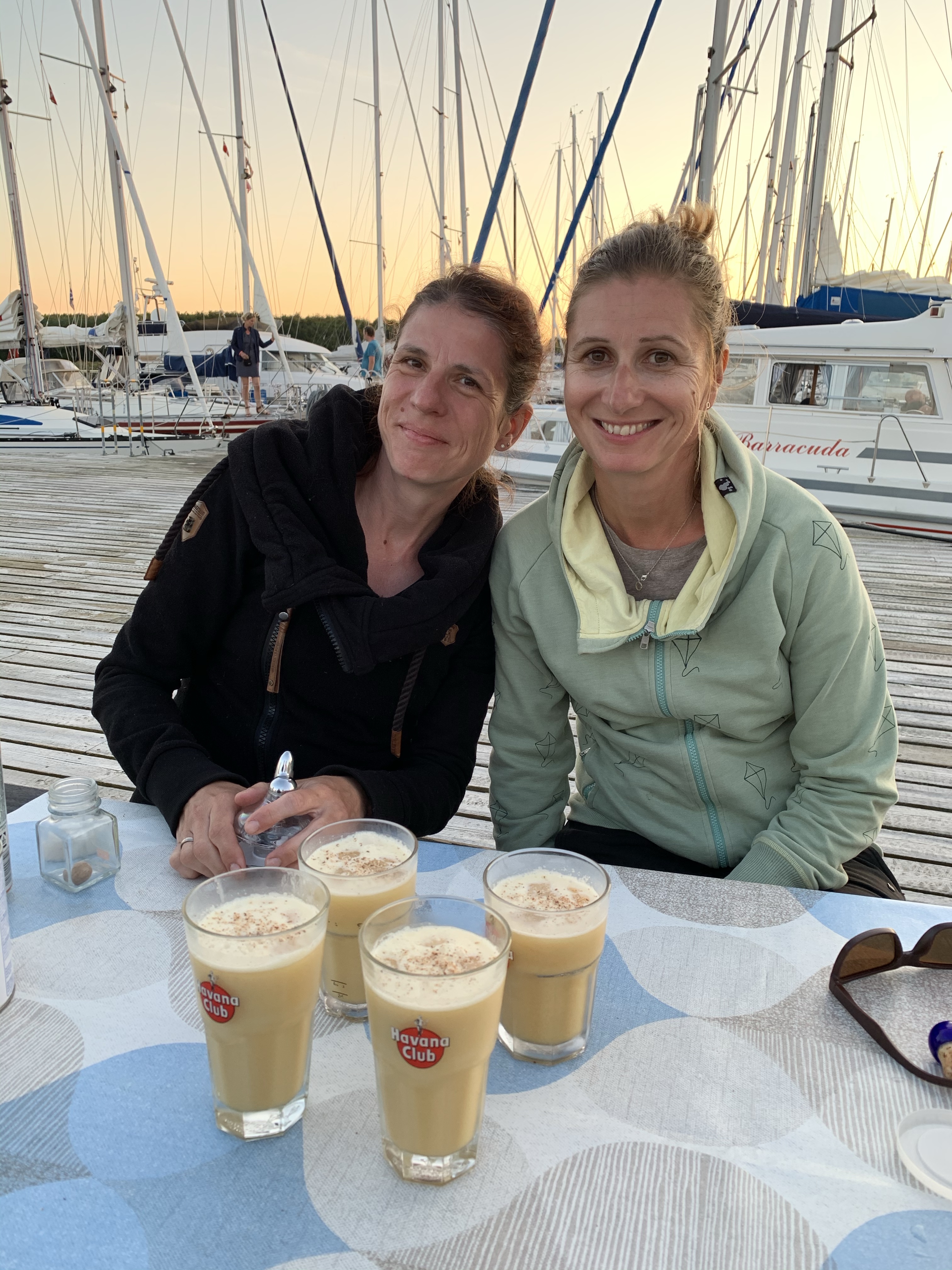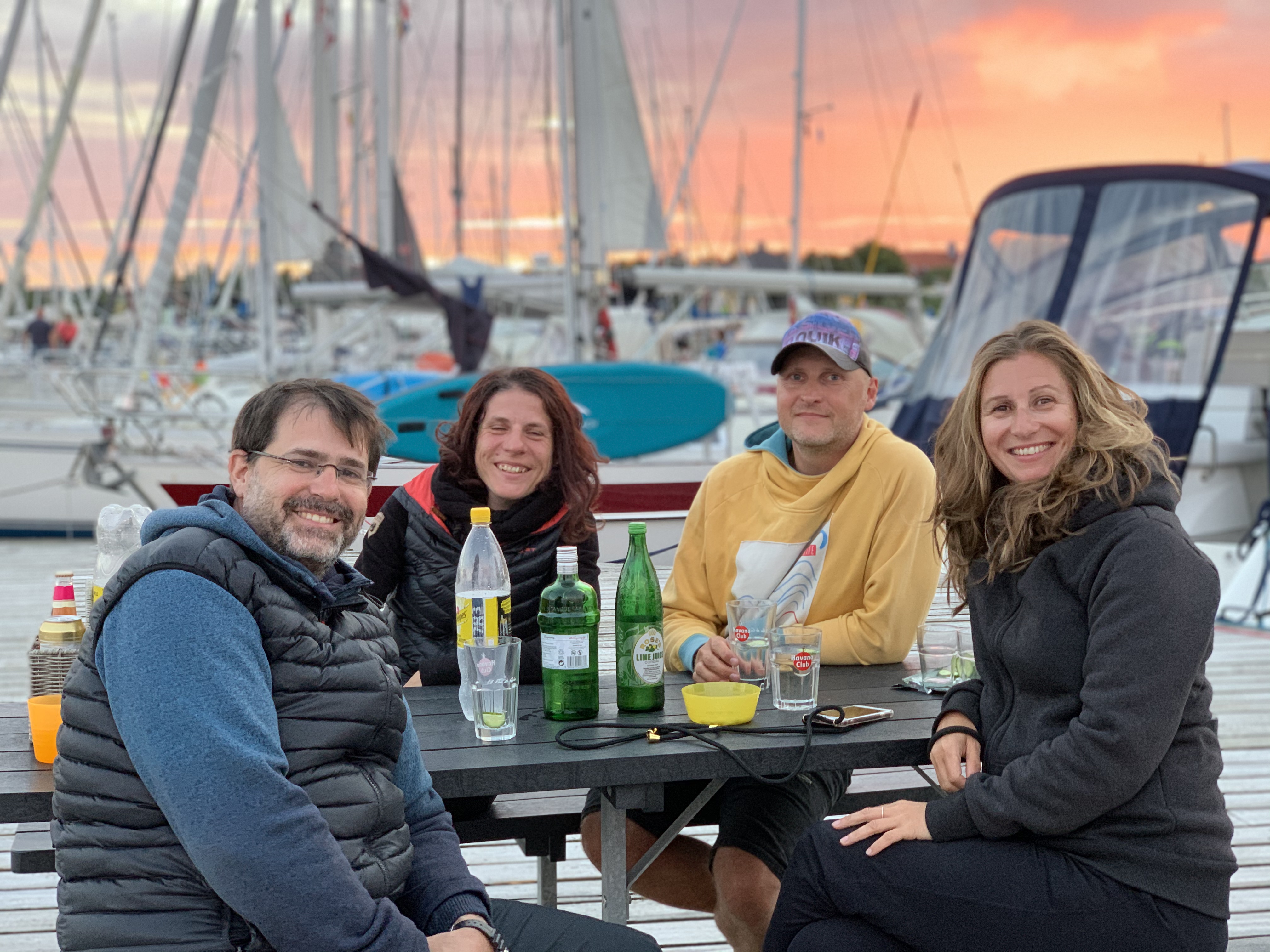 Wir haben die schönen Tage bestmöglich genutzt und waren mit SUP, Surfsegel, Opti auf der Lagune unterwegs. Auch das 18 Grad kalte Wasser wurde durch die wärmende Sonne erträglicher. Jeden Abend haben wir gegrillt. War nicht leicht, noch einen Platz zu finden, denn der Hafen ist pickepacke voll. Für ein wenig Karibikflair sorgte ich zusätzlich mit selbst gemixten Painkillern. Nur echt mit Muskatnuss oben drüben gerieben.
