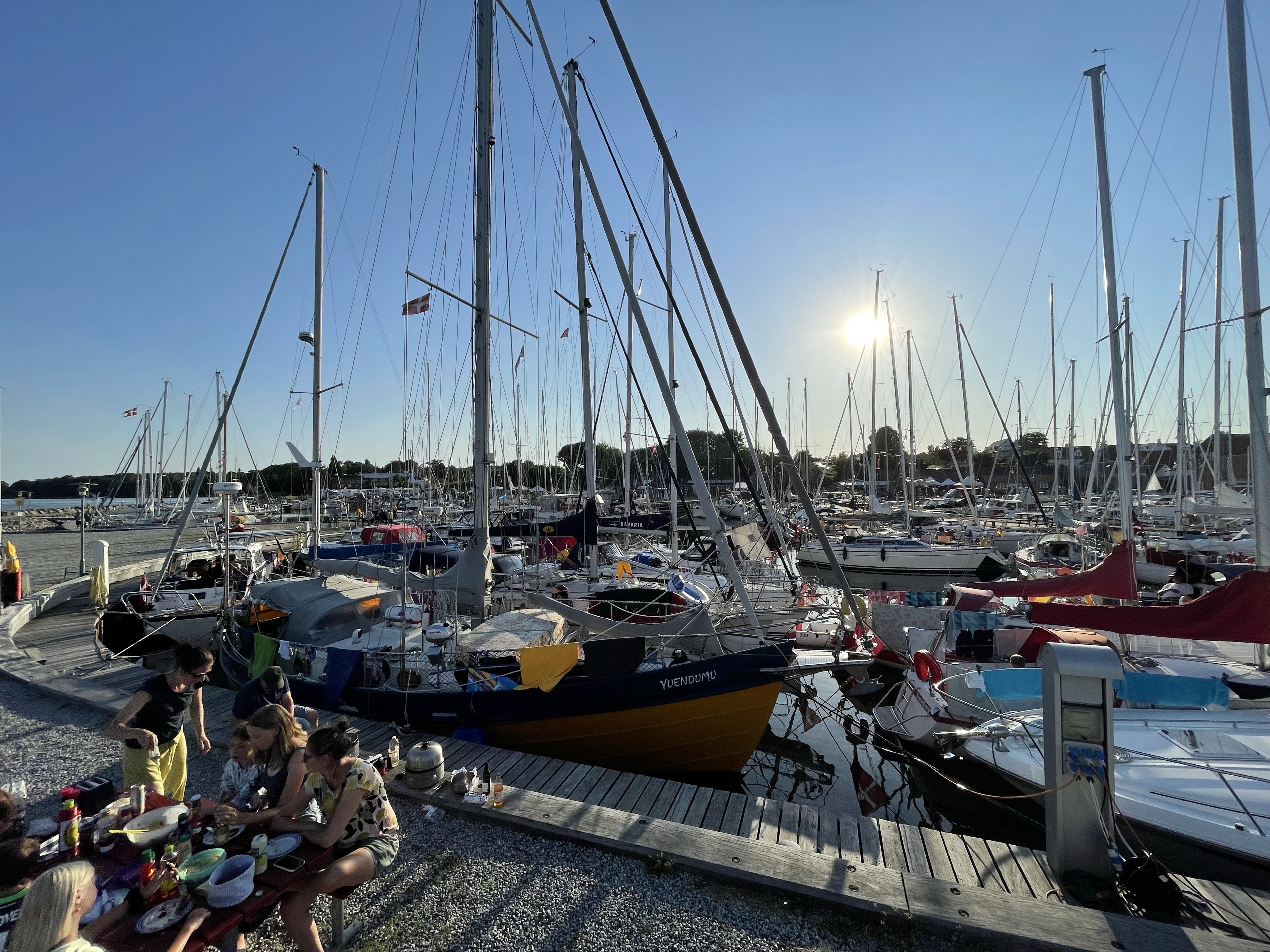 Durch den Sund ging es mit Motorkraft bis nach Nykøbing. Hier liegen wir am Außenanleger mit Blick über den Sund. Gemeinsam mit der Yuendumu verbringen wir hier nun den letzten gemeinsamen Urlaubstag. Die Kinder sind schon etwas wehmütig. Wir haben die kommende Woche noch Urlaub und können uns mit dem Rückweg etwas Zeit lassen.
