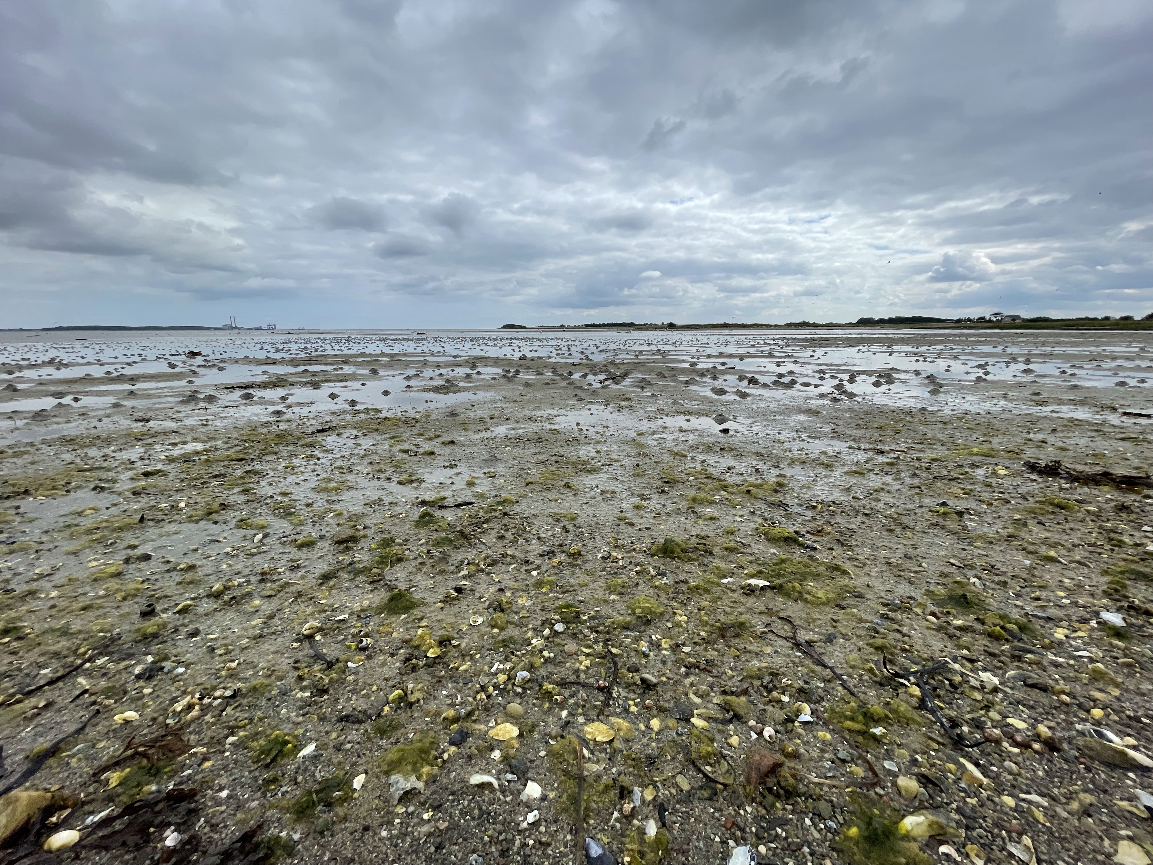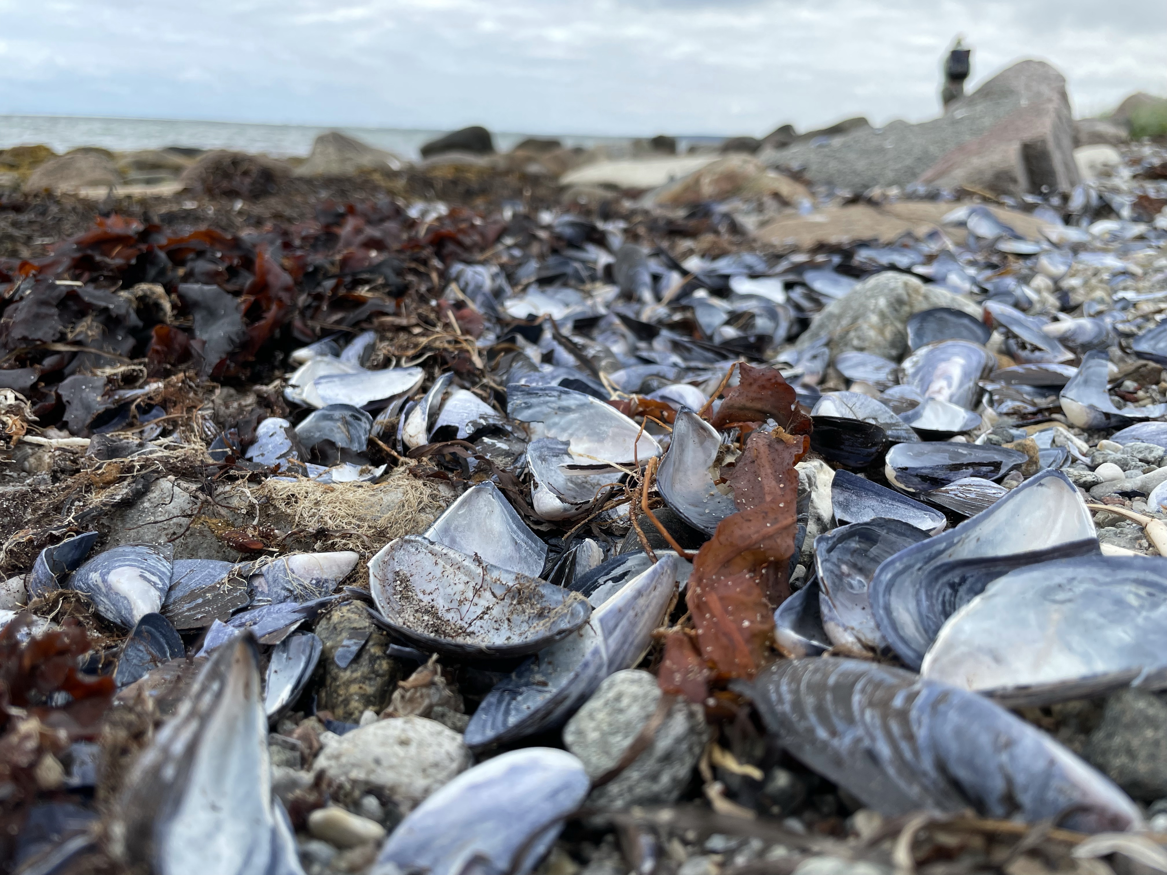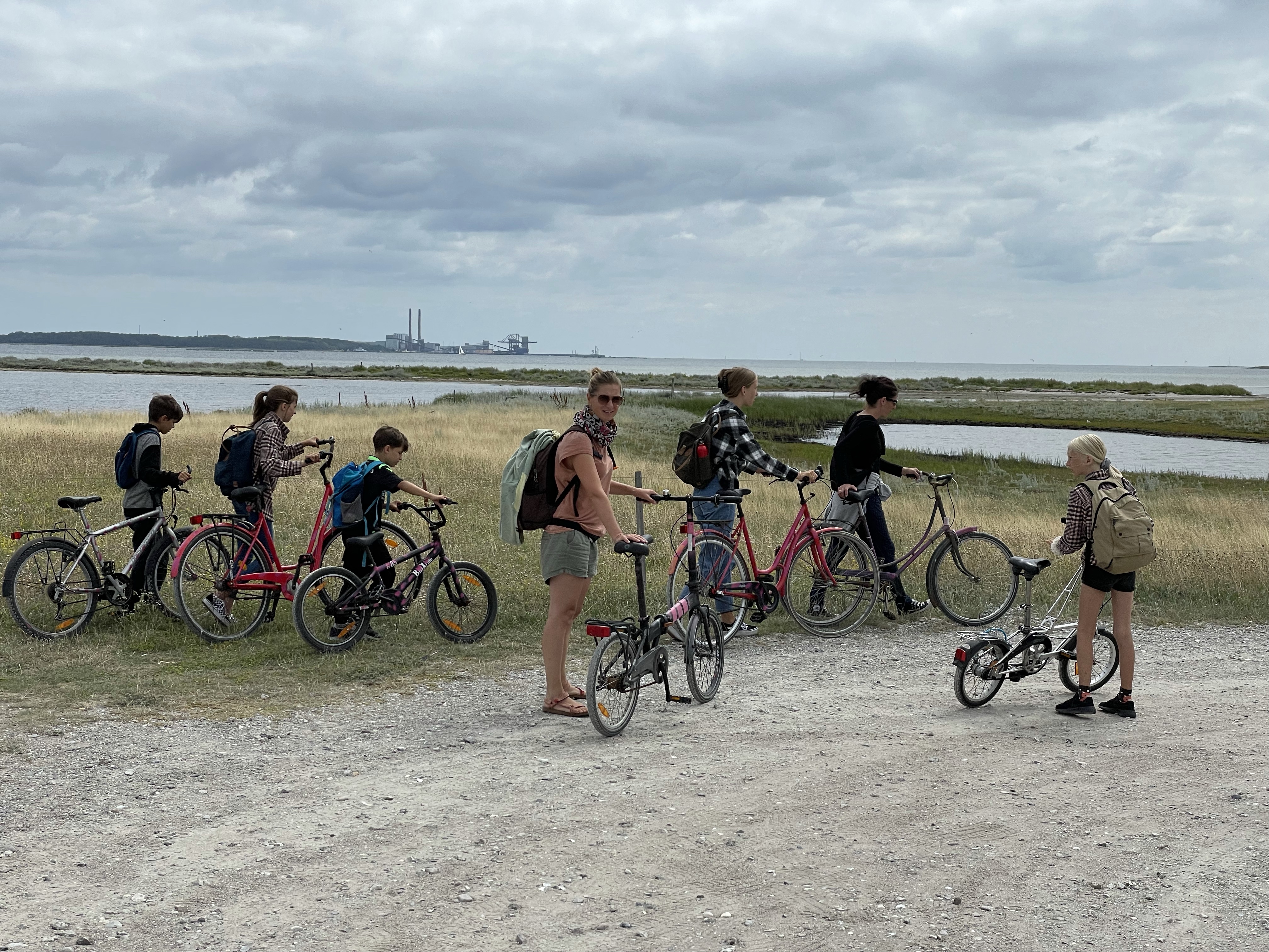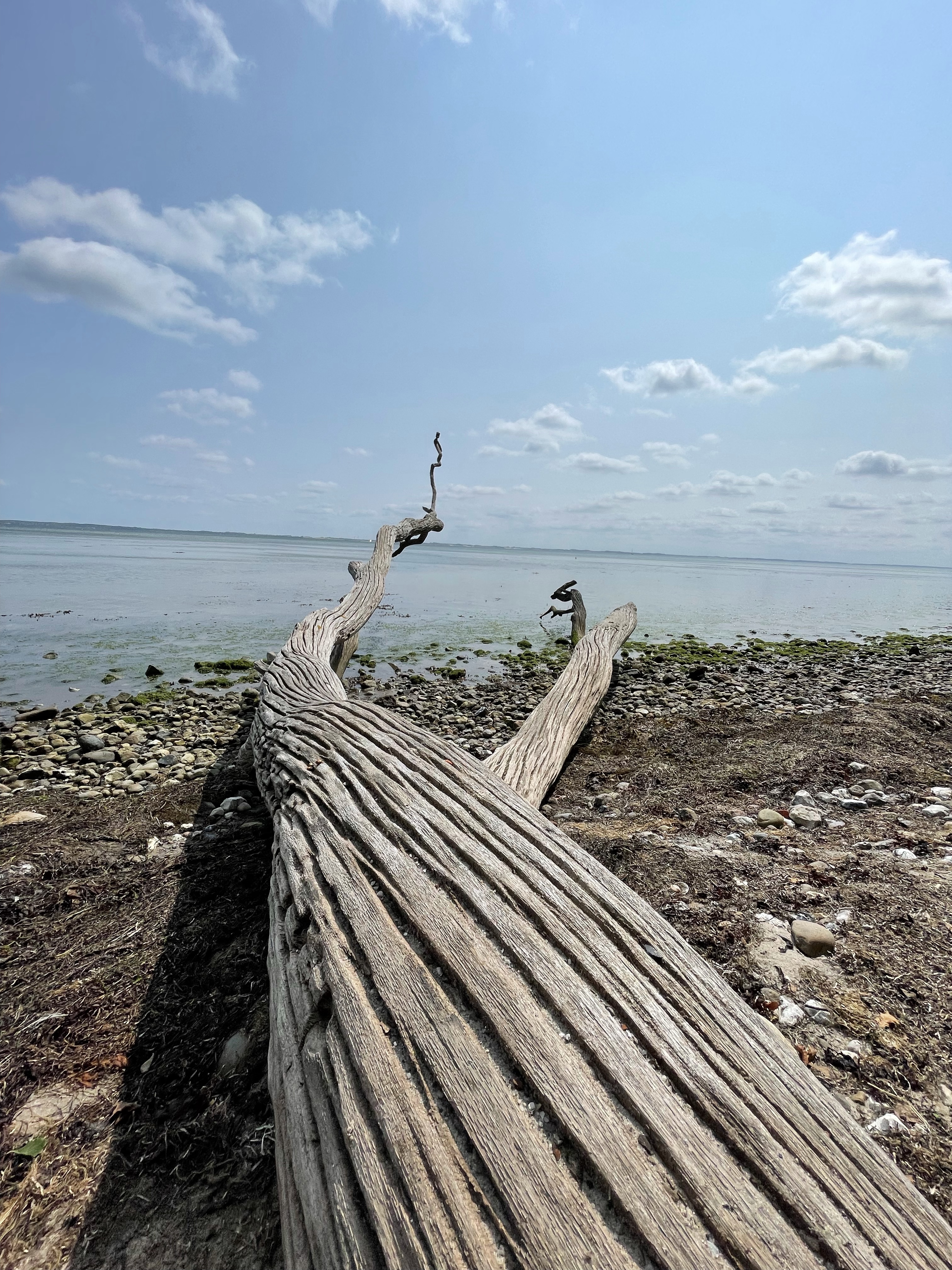 Den Hafentag auf Agersø nutzten wir für eine Fahrradtour zur Nordspitze der Insel. Dort wanderten wir durch das Naturschutzgebiet Egholm am Strand entlang, der von Steinen und Muscheln übersät war.
