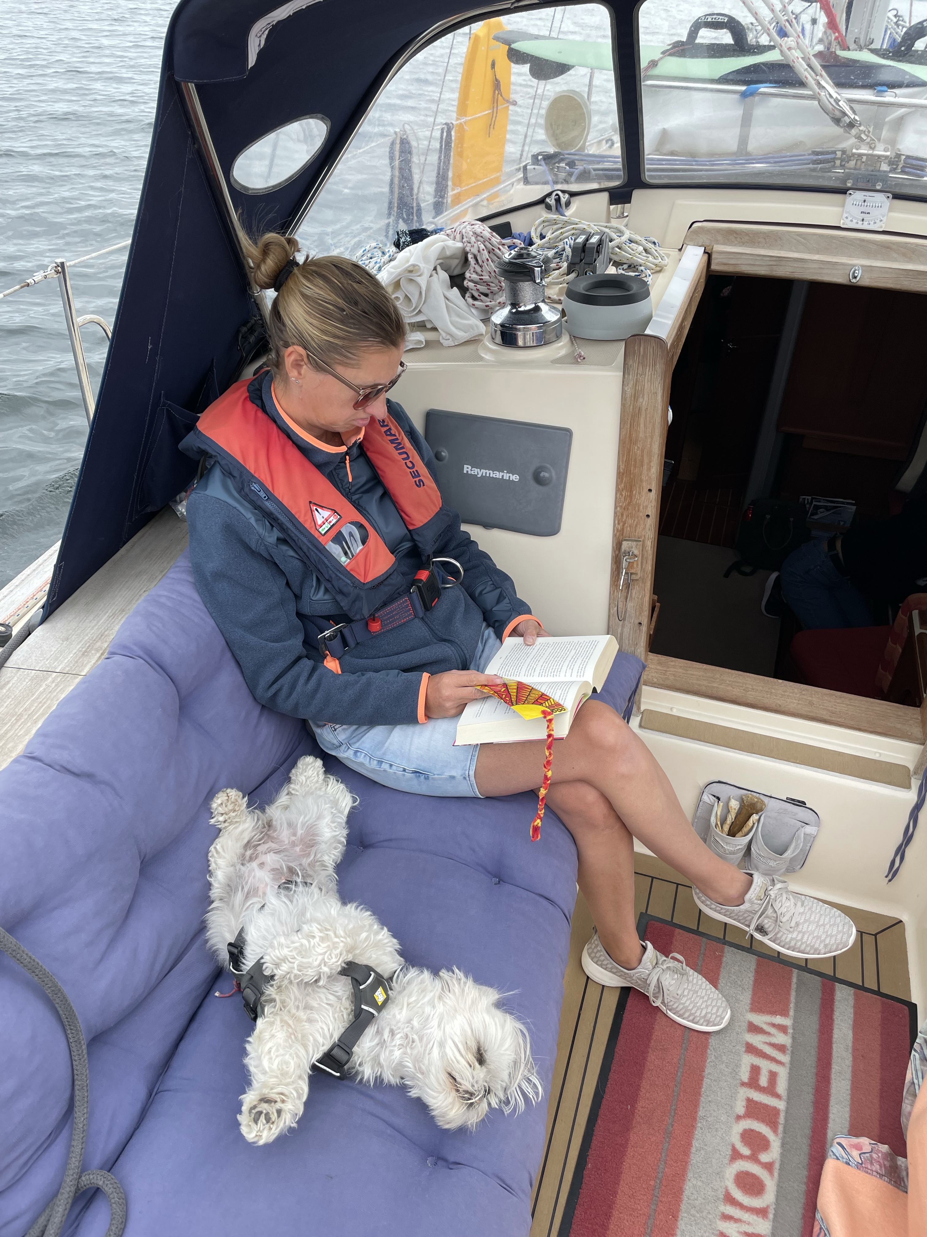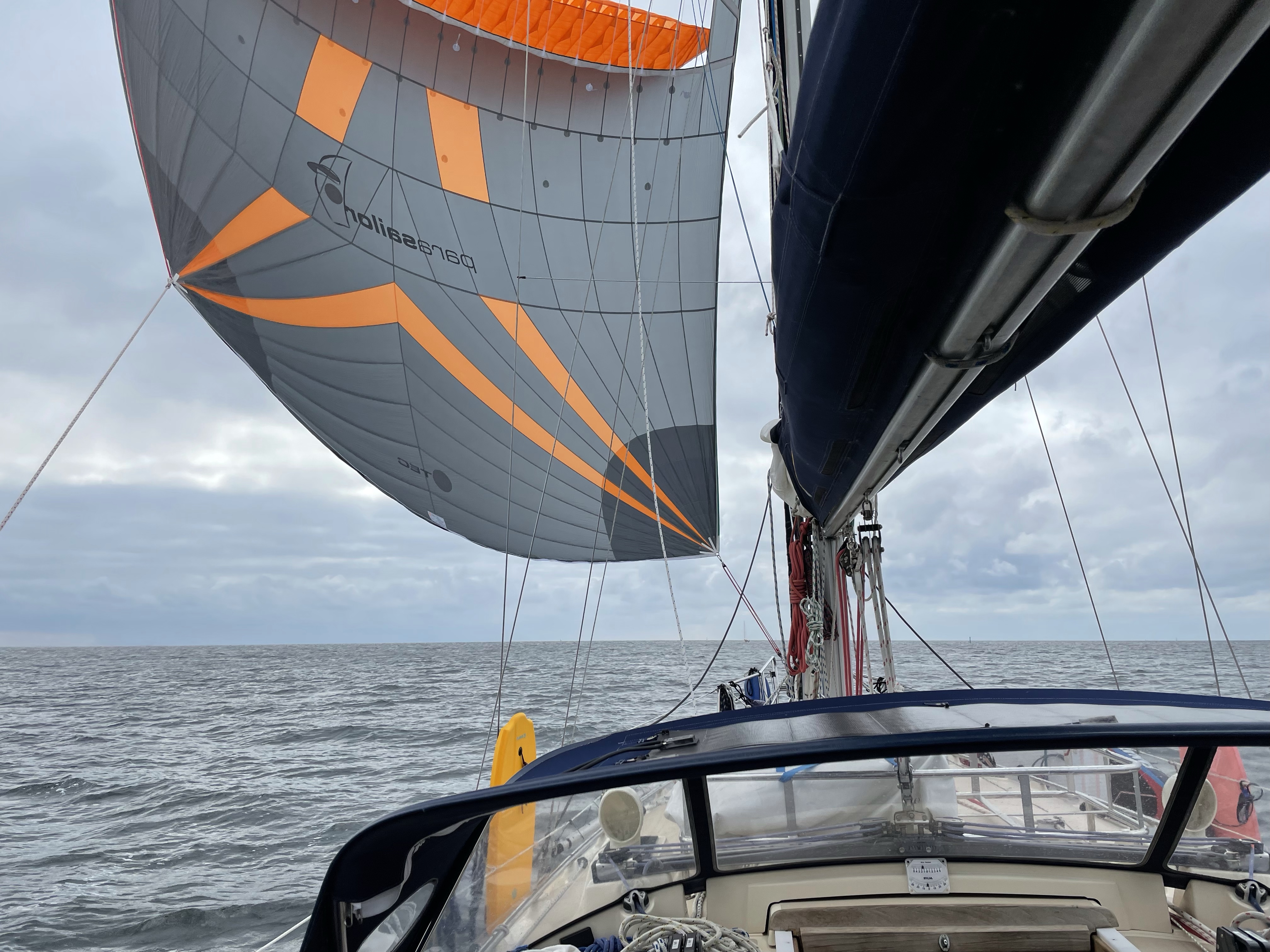 Von Agersø aus segelten wir am Mittwoch vor dem Wind nach Femø. Zeit, mal den Parasailor auszupacken. Der zog uns zuverlässig und ruhig unserem Ziel entgegen. Frühstück gab es an Bord. Der Wind hätte etwas stärker sein können aber mit 3,5 bis 4,5 Knoten kamen wir einigermaßen voran
