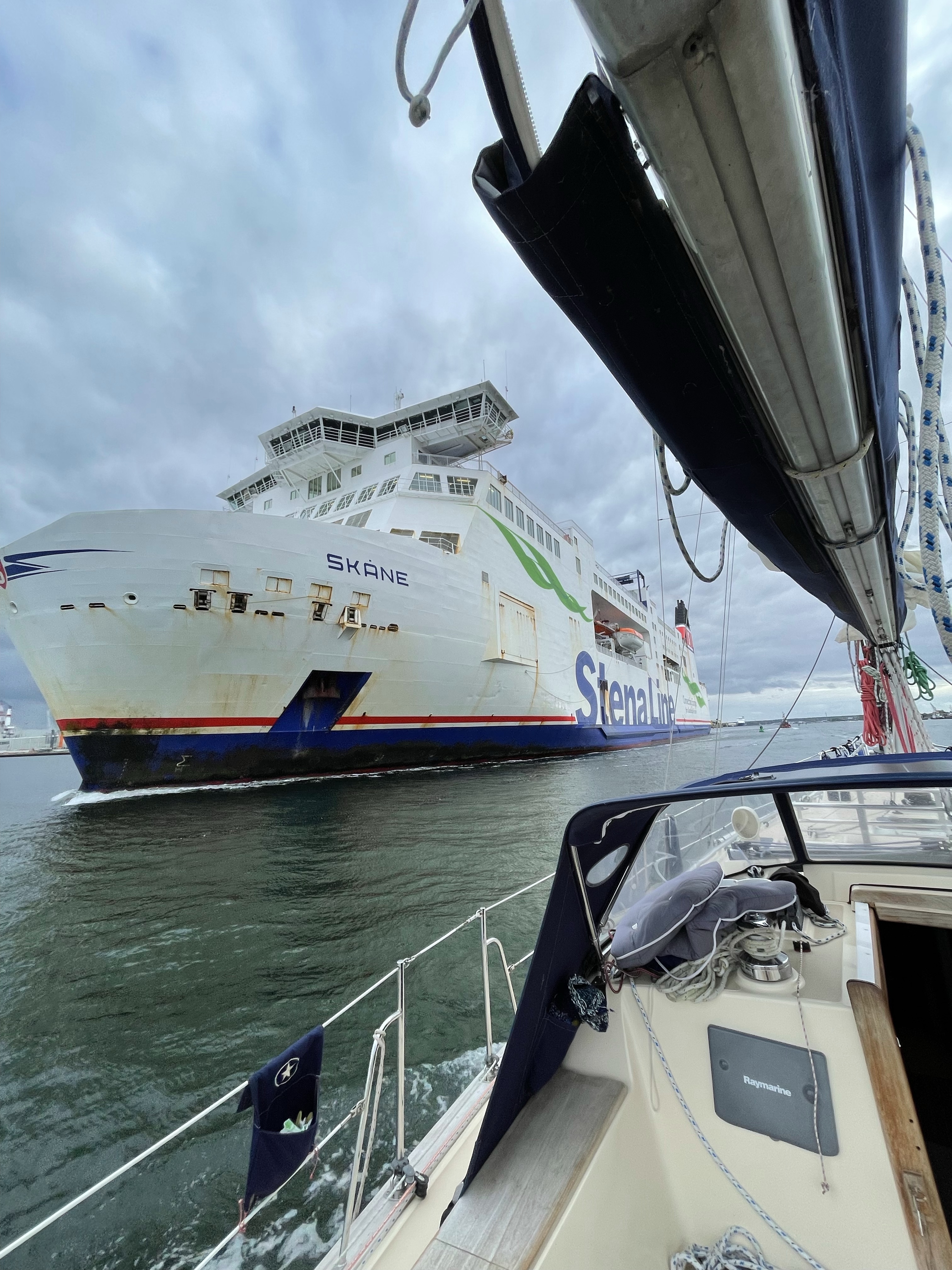 Am Freitag kachelt es noch richtig auf der Ostsee, als Jeannette mich nach Feierabend zum Hafen bringt. Der liegt sehr geschützt und wirkt fast windstill. In diesem Jahr nehme ich den Überführungstörn allein in Angriff, denn mein langjähriger Mitsegler Christoph hat soviel Blut geleckt beim Segeln, dass er mit seiner Familie im Juli zur Weltumseglung aufgebrochen ist. Dann teste ich halt mal meine Einhandfähigkeiten. Erstmal stärke ich mich mit Pizza und Bier und schaue an Bord einen Film.