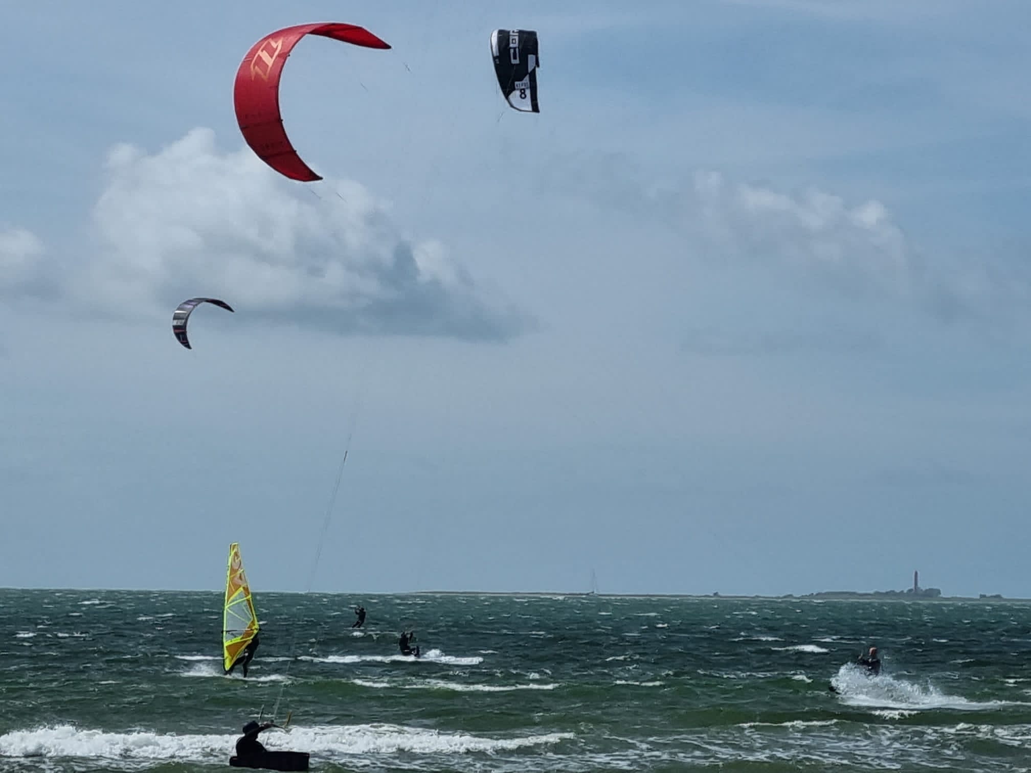 Die Tage bis Samstagnacht blies es aus allen Rohren weiter und der Wind kreischte durch die Riggs. Wir genossen die Partystimmung beim Surffestival, machten einen Ausflug nach Burg in die Surfshops und konnten dann am Samstagnachmittag doch noch unsere Kites auspacken. Freunde von Christian sind Dauercamper in Strukkamp und waren so nett uns mit unserem ganzen Zeug rüber zu fahren zum Surfspot. War ganz schön voll auf dem Wasser und mit unseren 10 Quadratmeter Kites waren wir etwas überpowert unterwegs. Die anderen unzähligen Kiter hatten 7er, 8er oder 9er Schirme am Start. Es war schön, mal wieder unterm Schirm zu hängen und nach einer Stunde wurden die Arme lang und die Oberschenkel weich bei der Brandung.