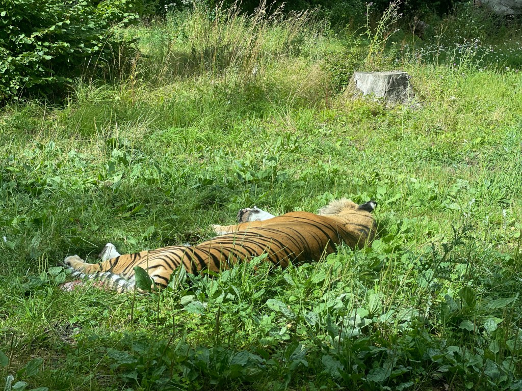 Unsere zunächst vergeblichen Bemühungen einen Mietwagen zu bekommen, waren dann doch noch von Erfolg gekrönt. Allerdings nicht in Nykøbing sondern in Maribo für den gestrigen Tag. Wir mussten also alle zum Bahnhof laufen, mit dem Zug nach Maribo fahren und dort zur Mietwagenfirma laufen. Gegen 12 Uhr erreichten wir dann endlich den Knutenborg Safaripark. Zunächst war es sehr voll und man kam sich vor wie im Stau. Dann verteilten sich die Besucher doch etwas und wir durch die Gehege von Eseln, Giraffen, Nashörnern und schauten und die Elefanten, Wölfe und Tiger an. Auch Dinosaurier gab es zu bestaunen. Zum Abschluss dann noch etwas Adrenalin bei einer steilen Wasserbahn.