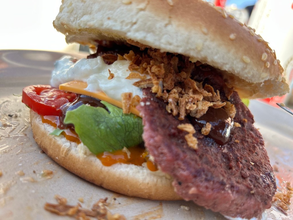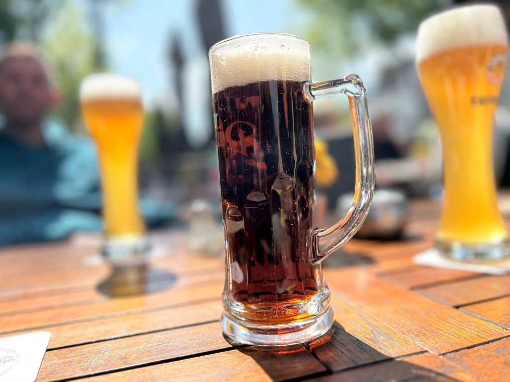 Wir frühstücken etwas später am Freitag. Die Nacht steckt uns noch etwas in den Knochen. Gegen Mittag nehmen wir den Bus in die Stadt nach Burg. Wollen ein bisschen Schlendern und in den Surfshops stöbern. Nach ein paar Käufen genießen wir auf einem sonnigen Platz kühlen Gerstensaft. Keiner treibt uns, einfach nur sitzen und genießen. In der Stadt herrscht reges Treiben. Davon lassen wir uns nicht anstecken. In einem Spirituosen-Laden kaufen wir uns „Heul nicht Rum“, der nach Mango und Banane schmecken soll. Das testen wir später.