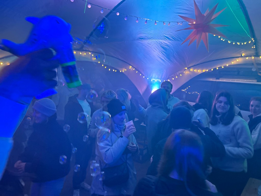 Gut gestärkt stürzen wir uns in das bunte Treiben und feiern zu den Mashup-Beats von DJ Chairgo. Gegen 23 Uhr greift dann der Lärmschutz und die Open Air Party muss ihr Ende finden. Im Haus des Gastes gibt´s dafür dieses Jahr wieder eine Indoor-Party. Der Andrang ist gewaltig. Eine Menschentraube spielt uns schließlich an den Securities vorbei in die Partyhöhle. Dort ist es so voll, dass die Hälfte der Getränke in der Hand eher auf dem T-Shirt landen. Die Stimmung kocht natürlich trotzdem. Wir verholen uns aber schon bald wieder nach Draußen an die Luft.