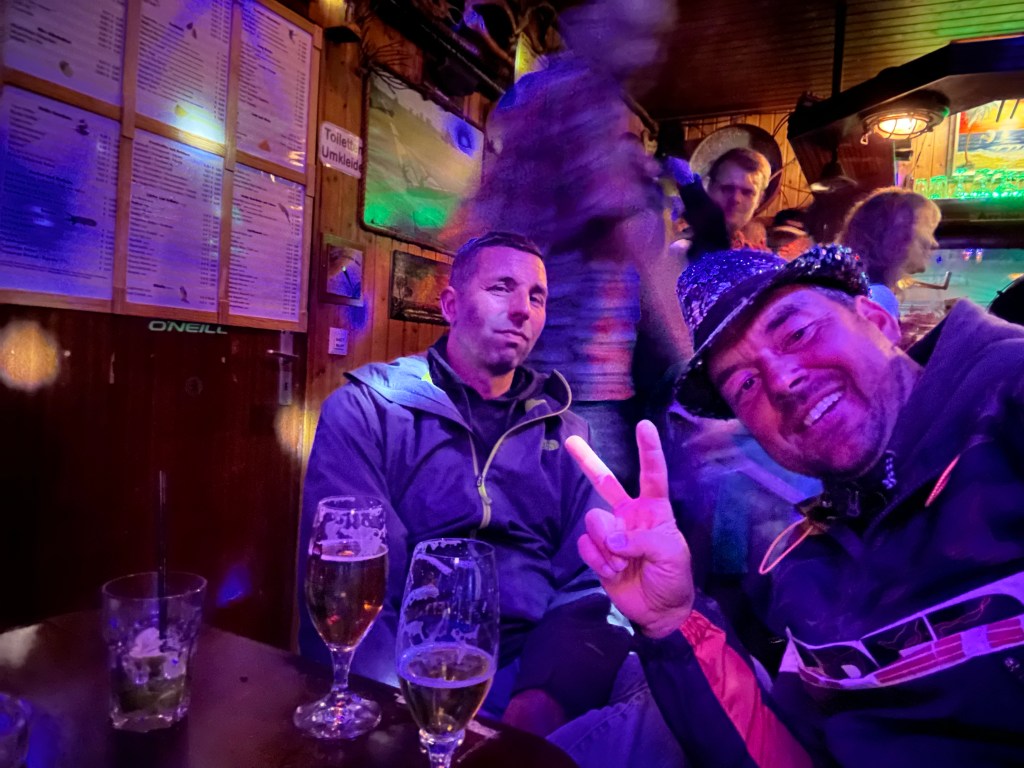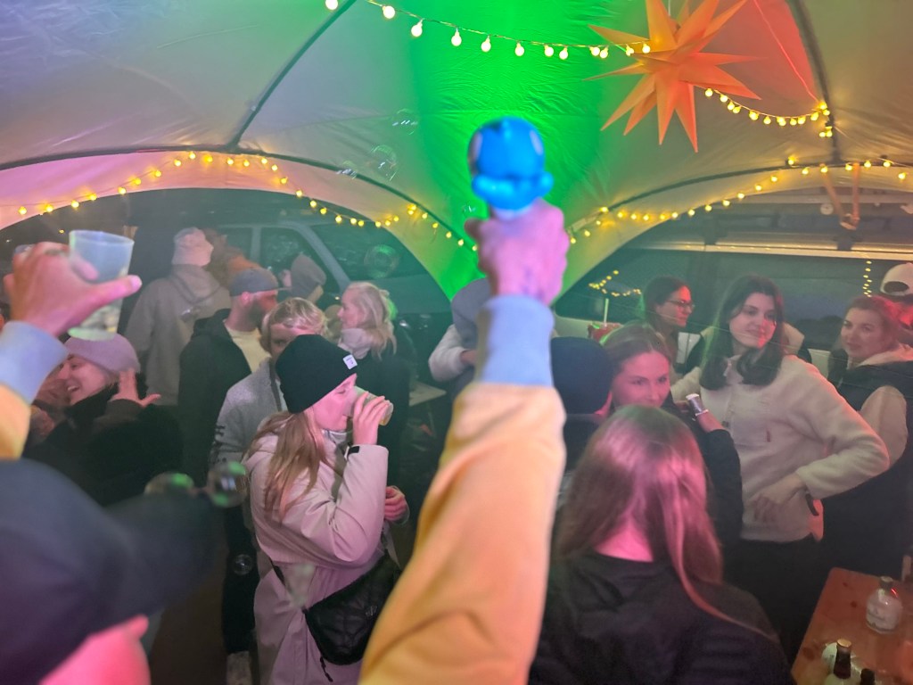 Eigentlich gibt es an jedem zweiten Surferbus eine Privatparty – meist mit DJ. Überall gibt es kreative Deko zu sehen oder eine andere Musikrichtung zu hören. Da uns noch etwas Schlafmangel in den Knochen steckt, halten wir nicht ganz so lange durch. Schauen noch auf ein Abschlussbierchen im Charchulla vorbei. Dort ist das Publikum heute älter aber die Stimmung trotzdem auf dem Höhepunkt. Die Stange auf dem Tisch erinnert ein wenig an die Reeperbahn und wird spontan von einem Mädel getestet. Bei uns ruft die Koje und diesmal teilen wir uns eine Pizza aus dem Automaten. Kurz vor Zwei steigen wir an Bord und haben Bettschwere erreicht.