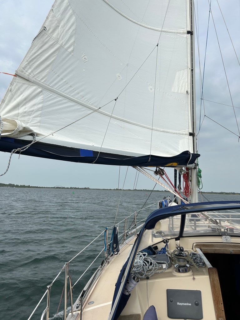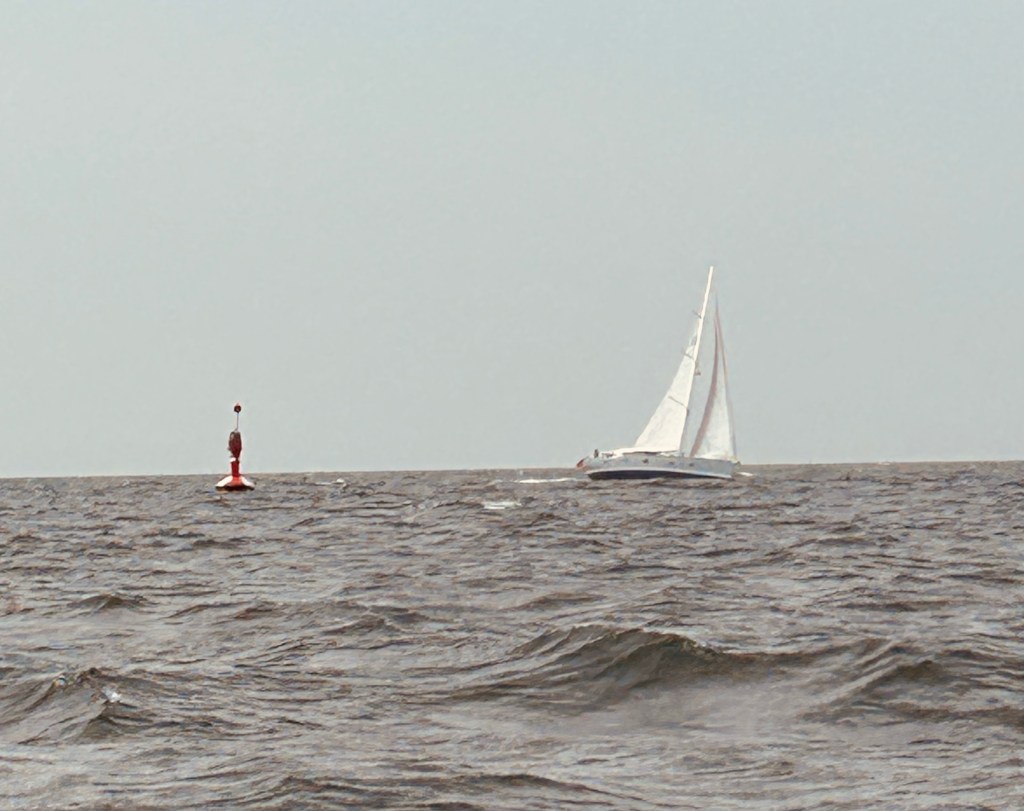 Am Sonntag schälen wir uns dann ausgeruht schön früher aus der Koje, so dass wir bereits kurz nach halb Zehn den Hafen verlassen. Im Binnensee setzen wir schon mal das Großsegel im zweiten Reff und um 10 Uhr passieren wir die Ausfahrt in den Fehmarnsund.