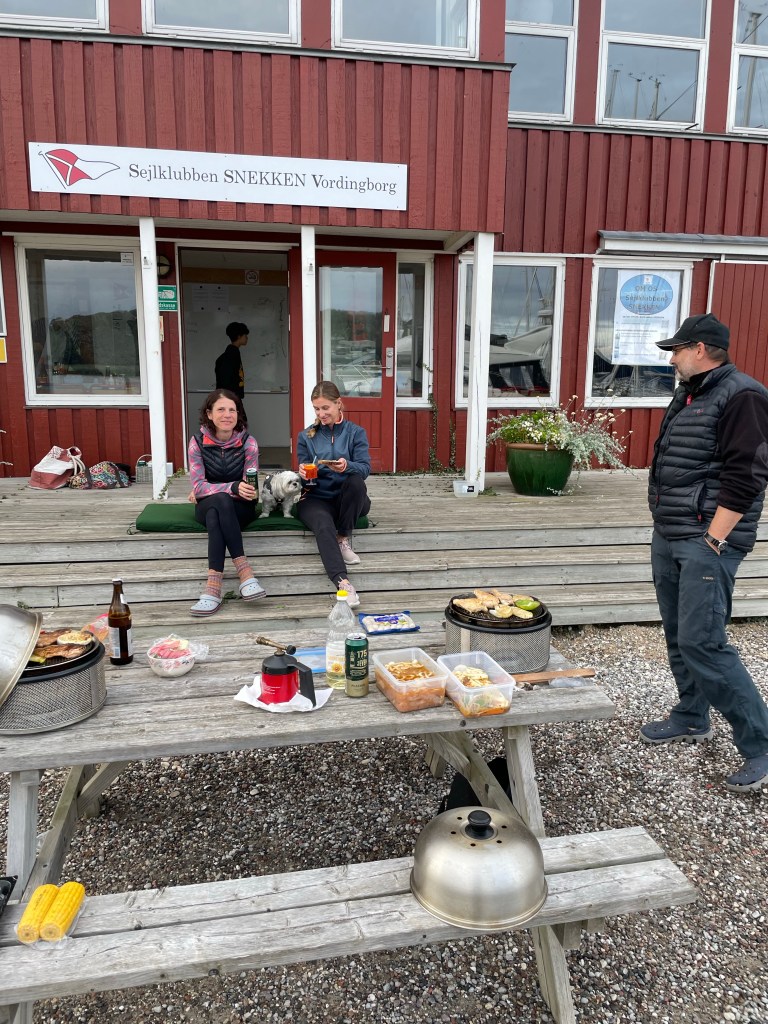 Abends tröpfelt es schon wieder. Wir können den Clubraum des Segelvereins nutzen und nur die Grillmeister müssen draußen sitzen. Der Regen hat Erbarmen und wir sitzen bis es dunkel wird sogar noch draußen.