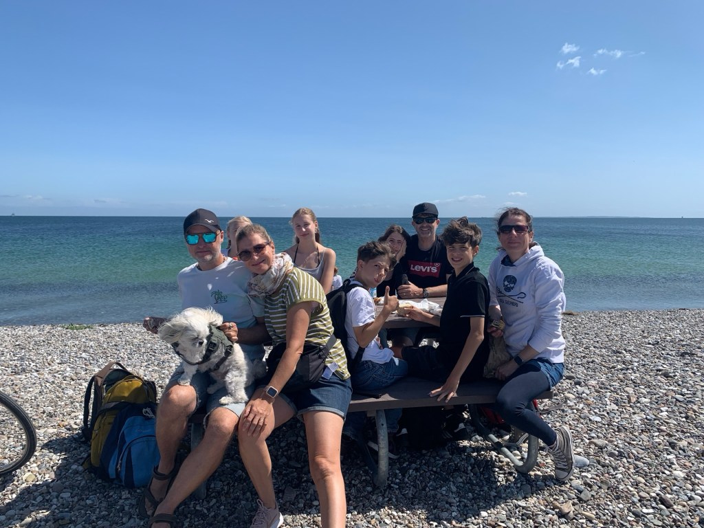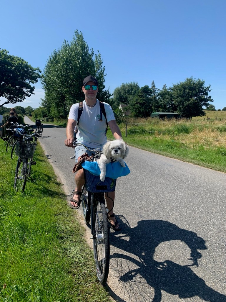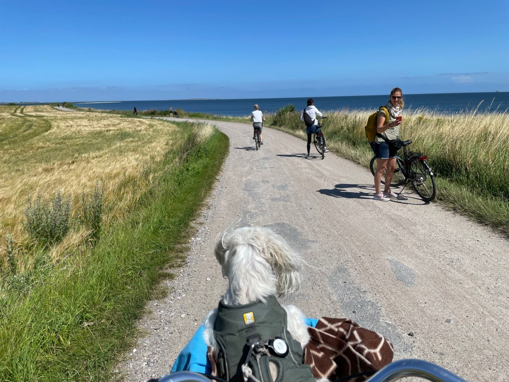 Am Mittwoch hatten wir vom quirligen Ballen aus alle zusammen eine ausgiebige Fahrradtour unternommen. Es ging nach Norden ans Südende der großen Lagune, wo wir am Steinstrand ordentlich durchgepustet wurden. Nach einem Abstecher auf die windige Westseite inklusive Badestopp in den Wellen radelten wir mit Rückenwind zurück zum Hafen.