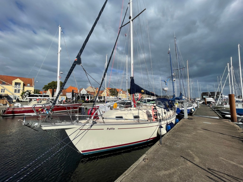 Ein kleiner Schauer erwischt uns aber dafür frischt auch der Wind auf. Die Welle nimmt ebenfalls zu und wir rauschen vorbei an Lyø auf die Spitze von Ærø zu. Zeit abzubiegen und Kurs auf Faaborg zu nehmen. Mit Welle von der Seite und ordentlichen Böen setzten wir statt der Genua nur die Kutterfock zum vollen Großsegel. Mit ausreichenden 5-6 Knoten erreichten wir das Fahrwasser nach Faaborg und konnten hart am Wind bis vor den Hafen segeln. Die Yuendumu war schon da und hat uns einen schönen Liegeplatz ausgekundschaftet mit Blick auf die Foodtrucks an der Promenade.