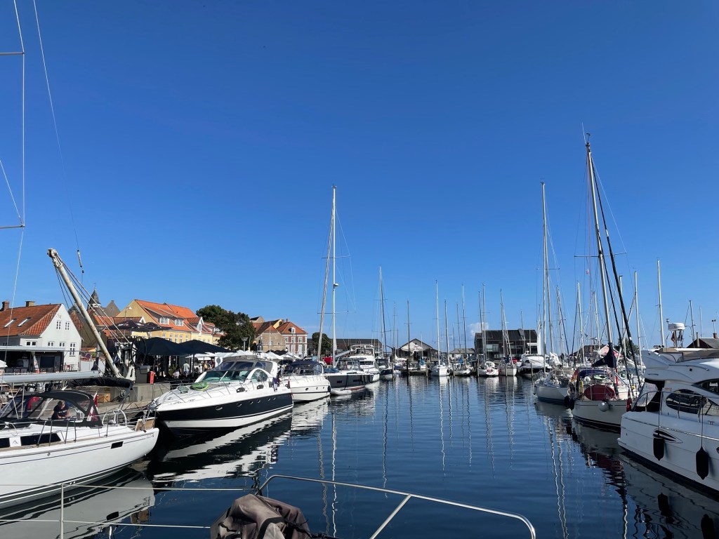 In Faaborg verbrachten wir bei bestem Wetter noch einen Hafentag, schlenderten durch die Stadt und Lilli dirigierte uns zu verschiedenen Second Hand Läden. Am Hafen stärkten wir uns mit einer Räucherfisch-Platte und die Kids mit Bowls vom Foodtruck.