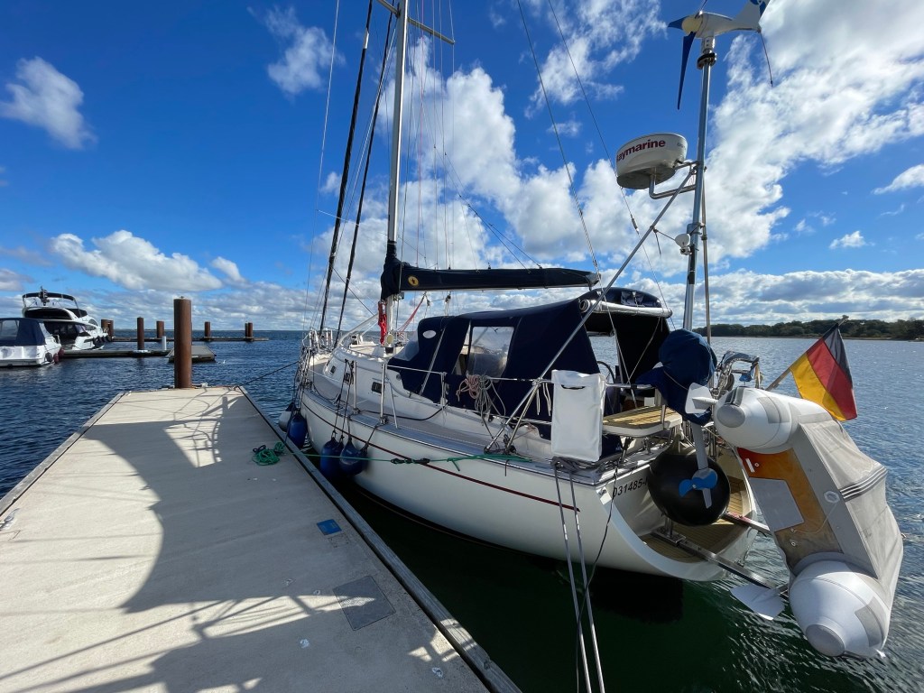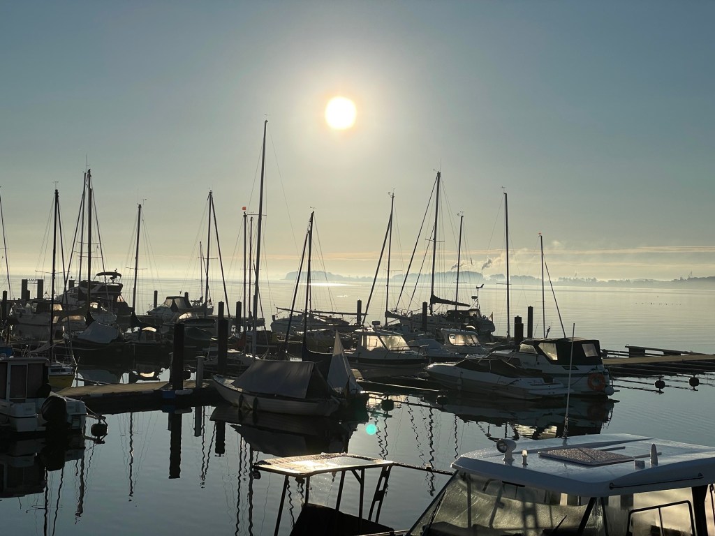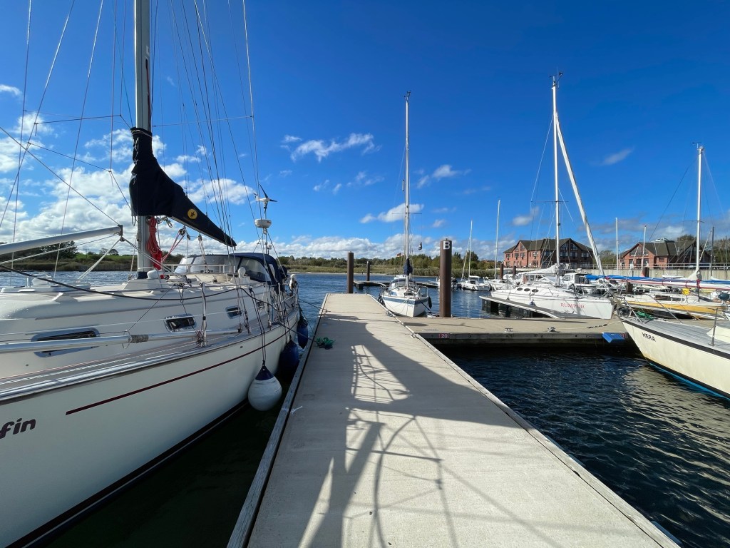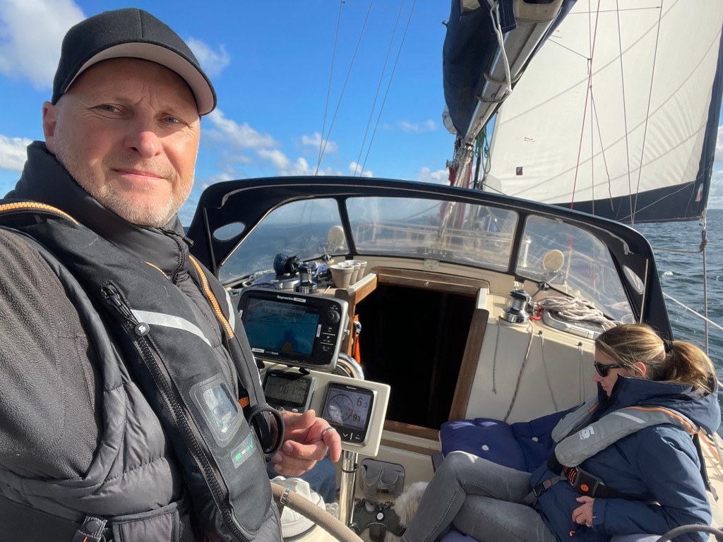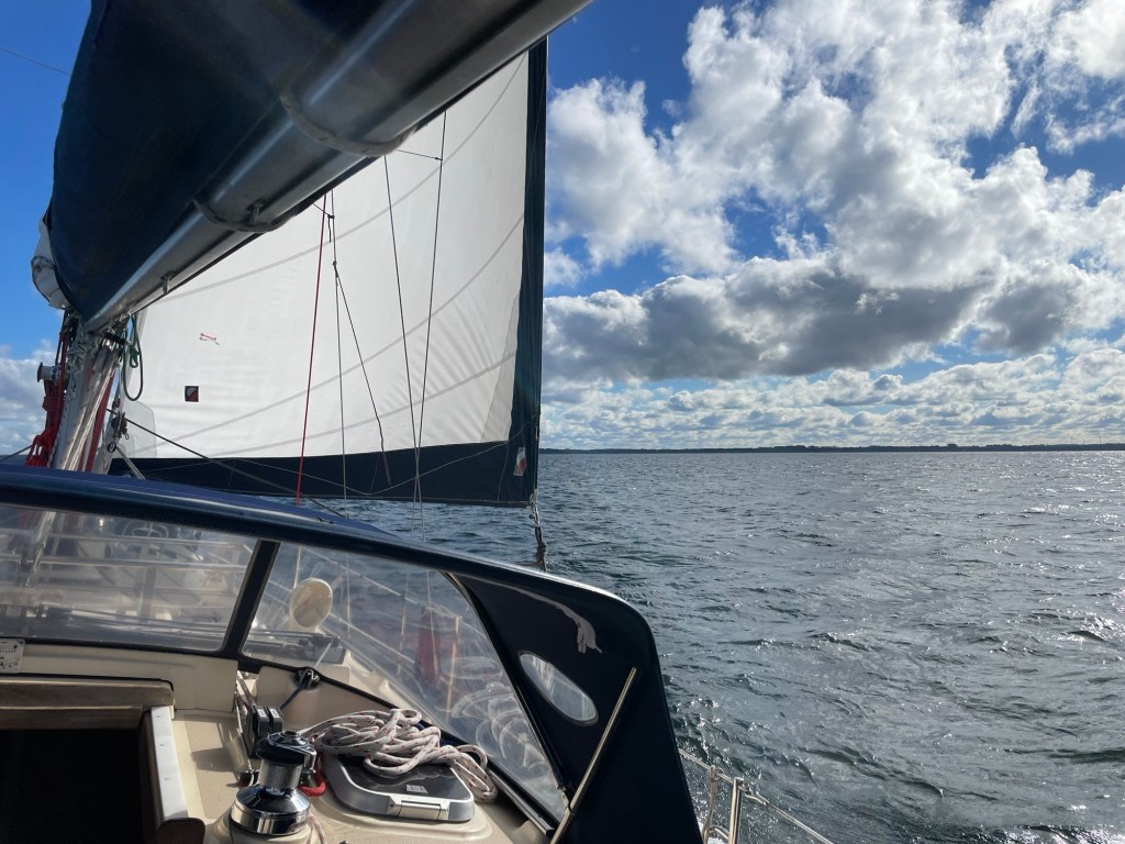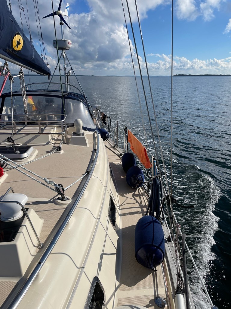 Am Freitag laufen wir bei schönem Sonnenschein mittags aus und setzen bei noch recht starkem Halbwind nur die Genua. Das reicht für 5 Knoten und ganz entspannt nehmen wir Kurs auf unser Ziel Hohen Wieschendorf.