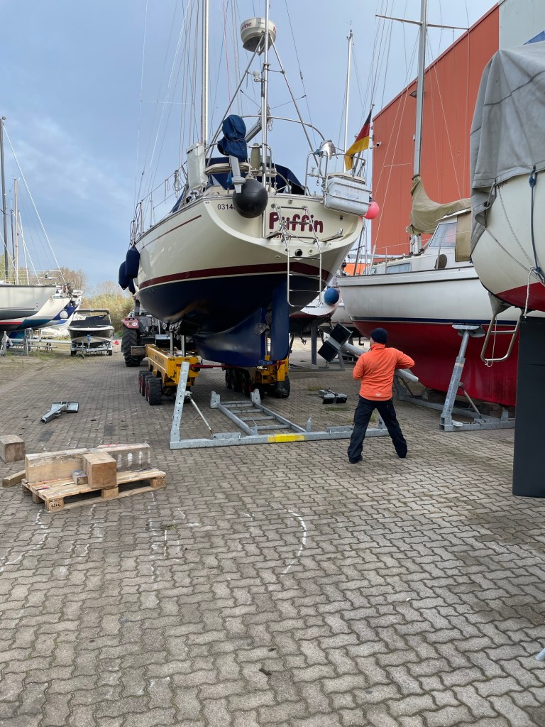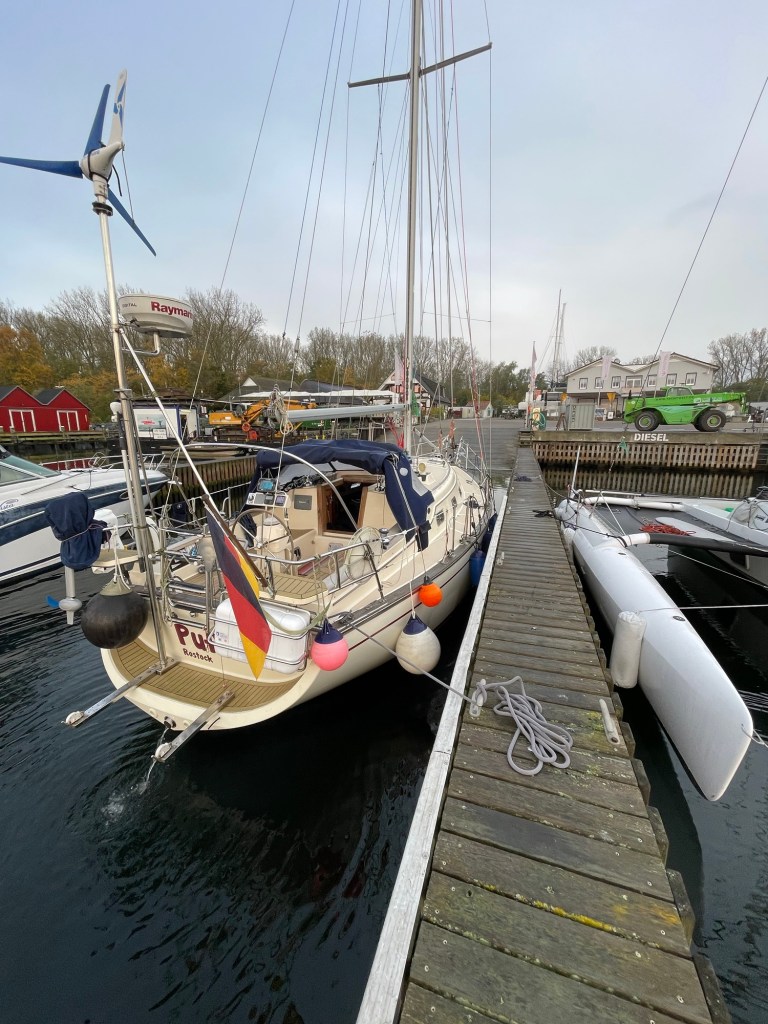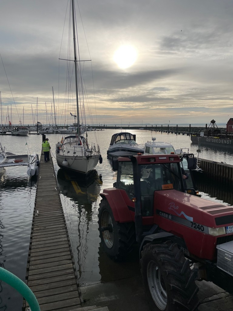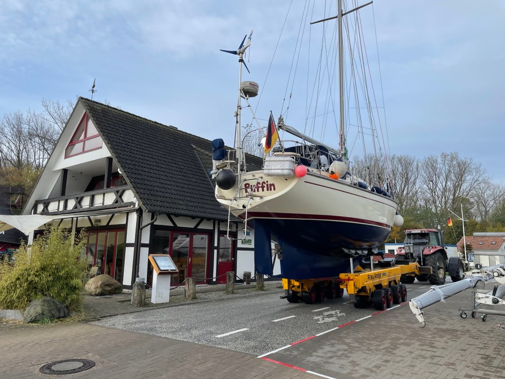 Ende Oktober ist der Drops gelutscht. Die Segelsaison liegt im Kielwasser und die letzte Fahrt führt nur durch den Hafen bis zur großen Slipanlage. Dieses Jahr steht kein Überführungstörn nach Rostock an, denn wir haben für den Winterschlaf diesmal unsere Marina ausgewählt.